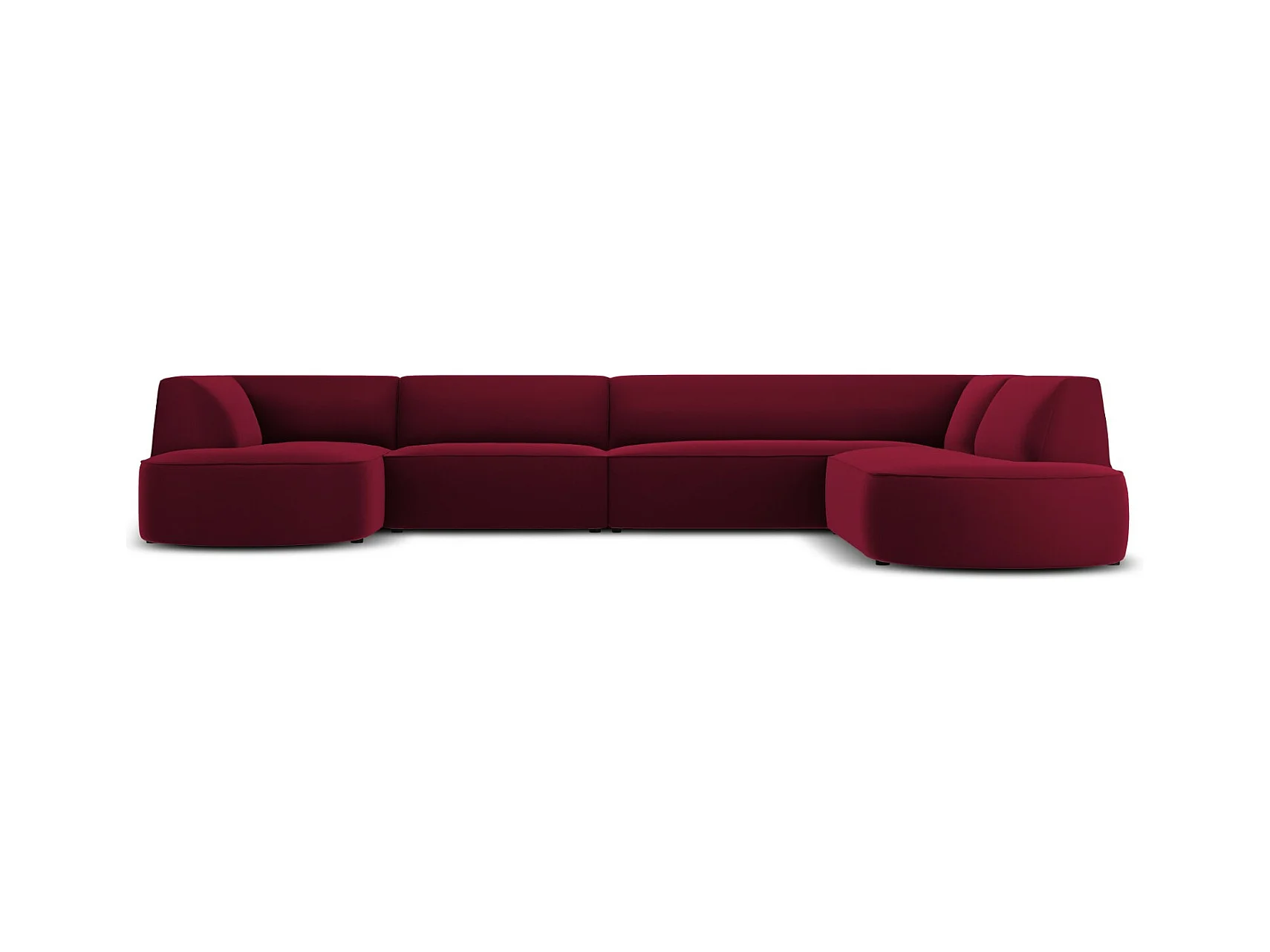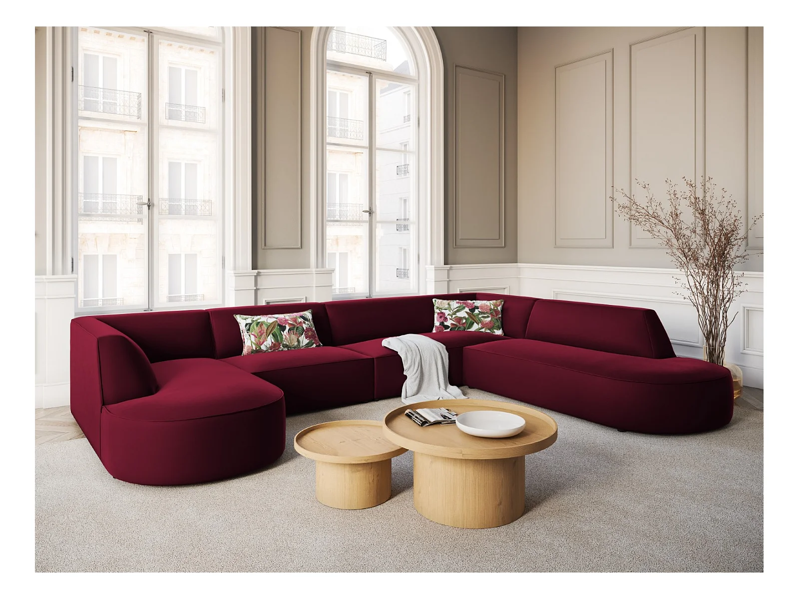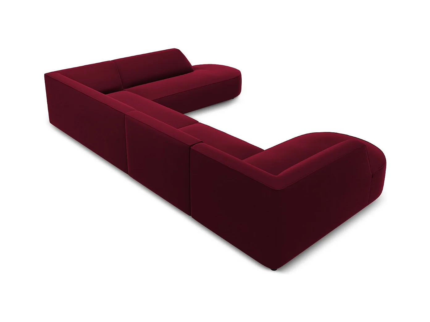 Cosmopolitan Design - Canapé d'angle droit panoramique "Bali" 7 places en velours rouge - 327x256x75cm