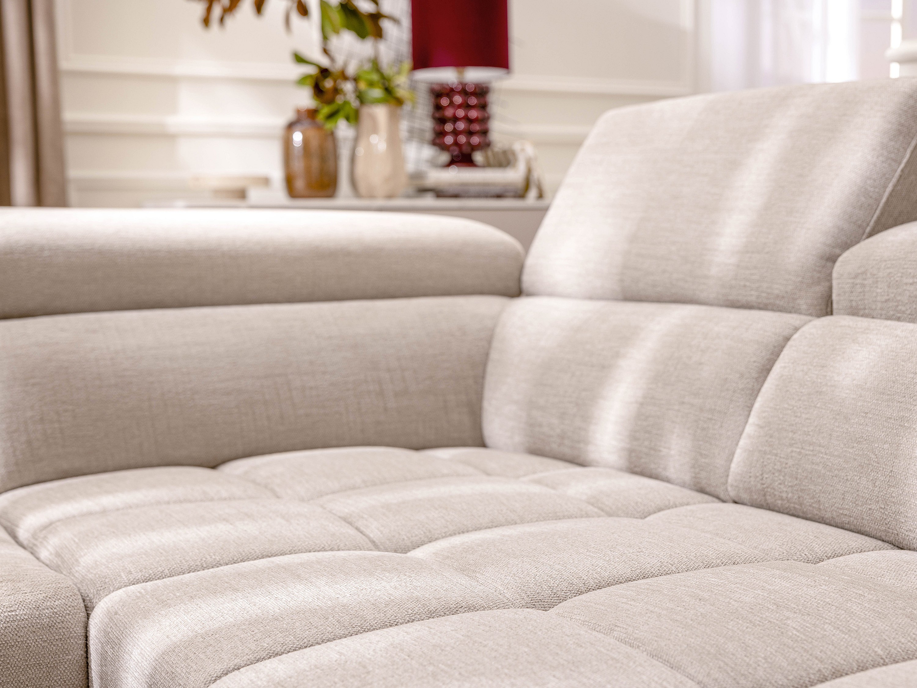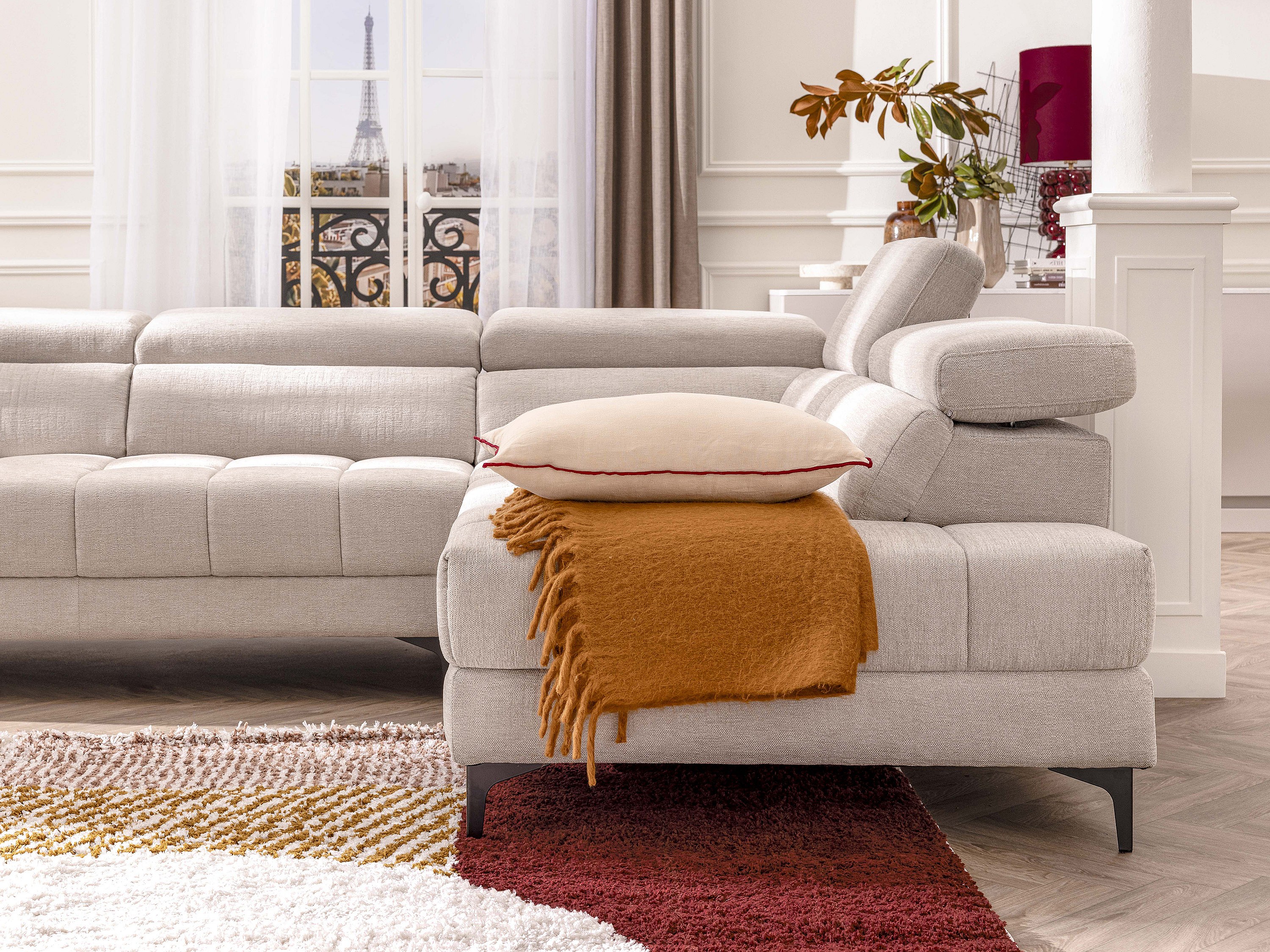 Canapé d'angle droit relax assise coulissante électrique en tissu beige MONISO