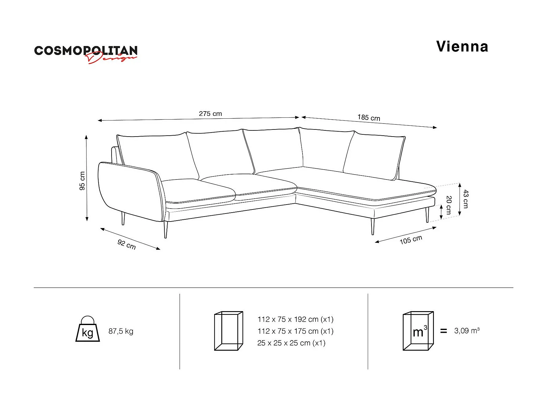 Cosmopolitan Design - Canapé d'angle droit "Vienna" 6 places en velours vert bouteille - 275x185x95cm