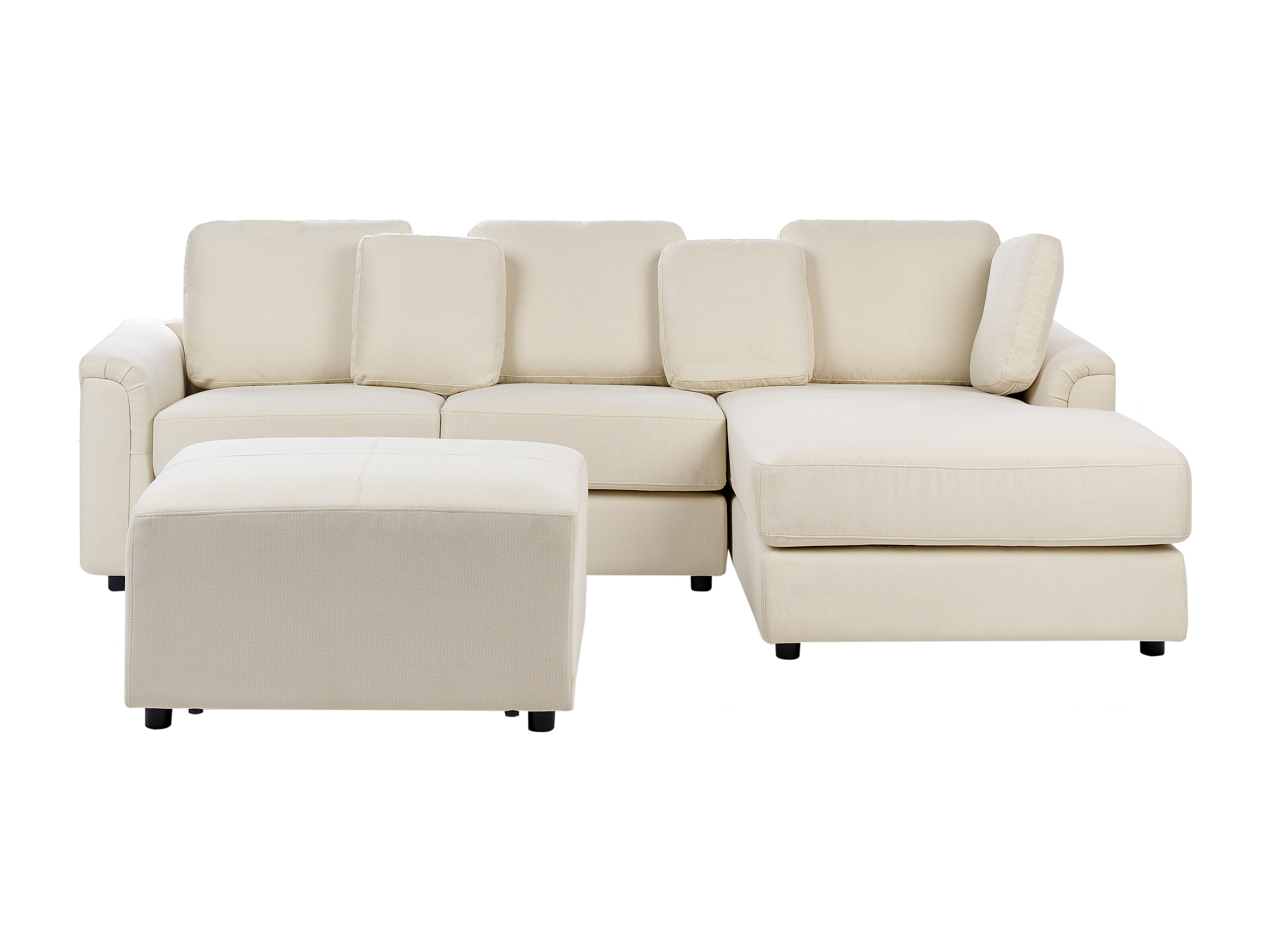 Canapé d'angle 4 places KOHLO Tissu Beige clair avec ottoman Côté droite