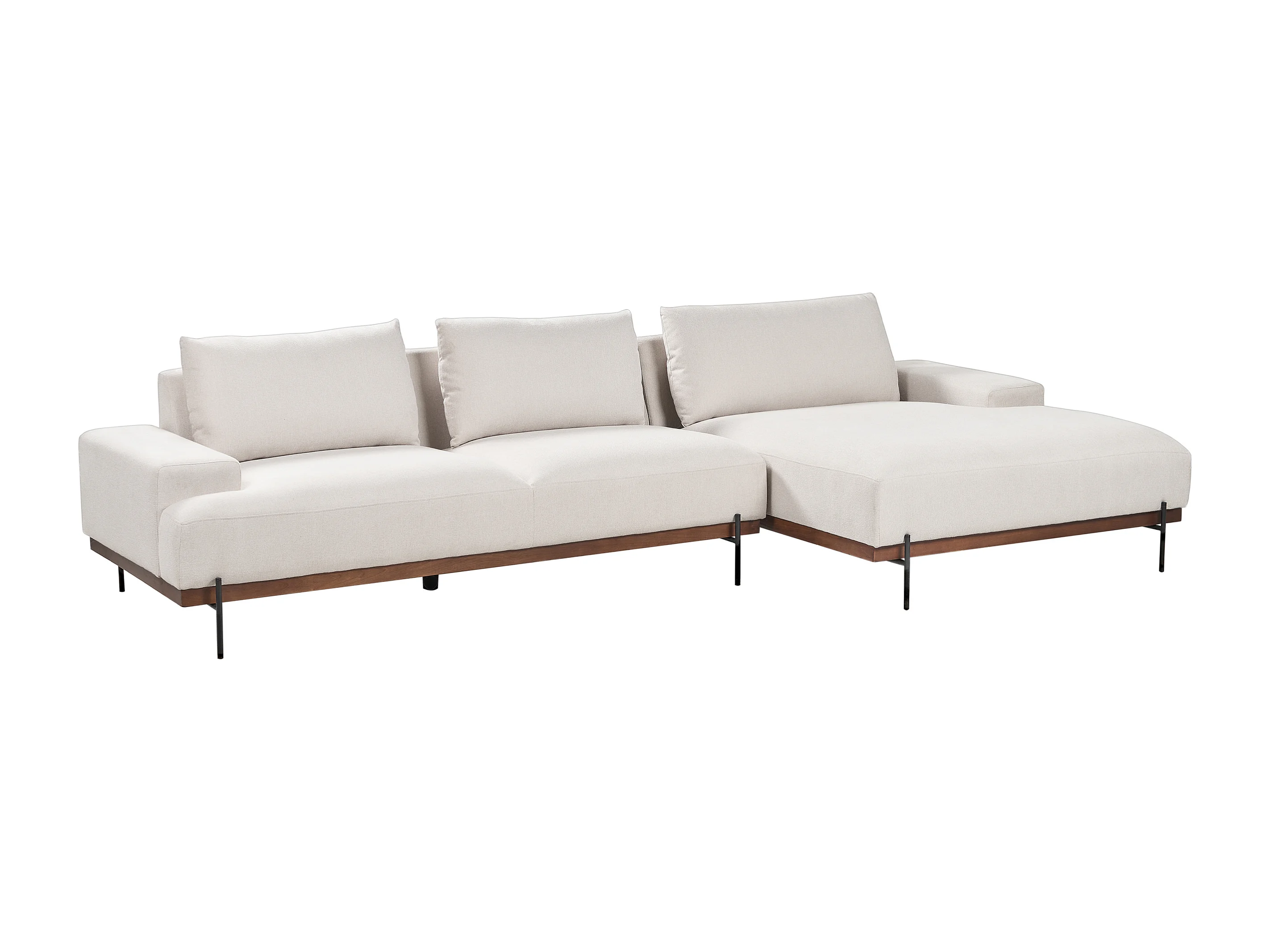 Canapé d\'Angle droite Style Minimaliste 3 Places en Tissu Beige et Pieds Métal Mariferd