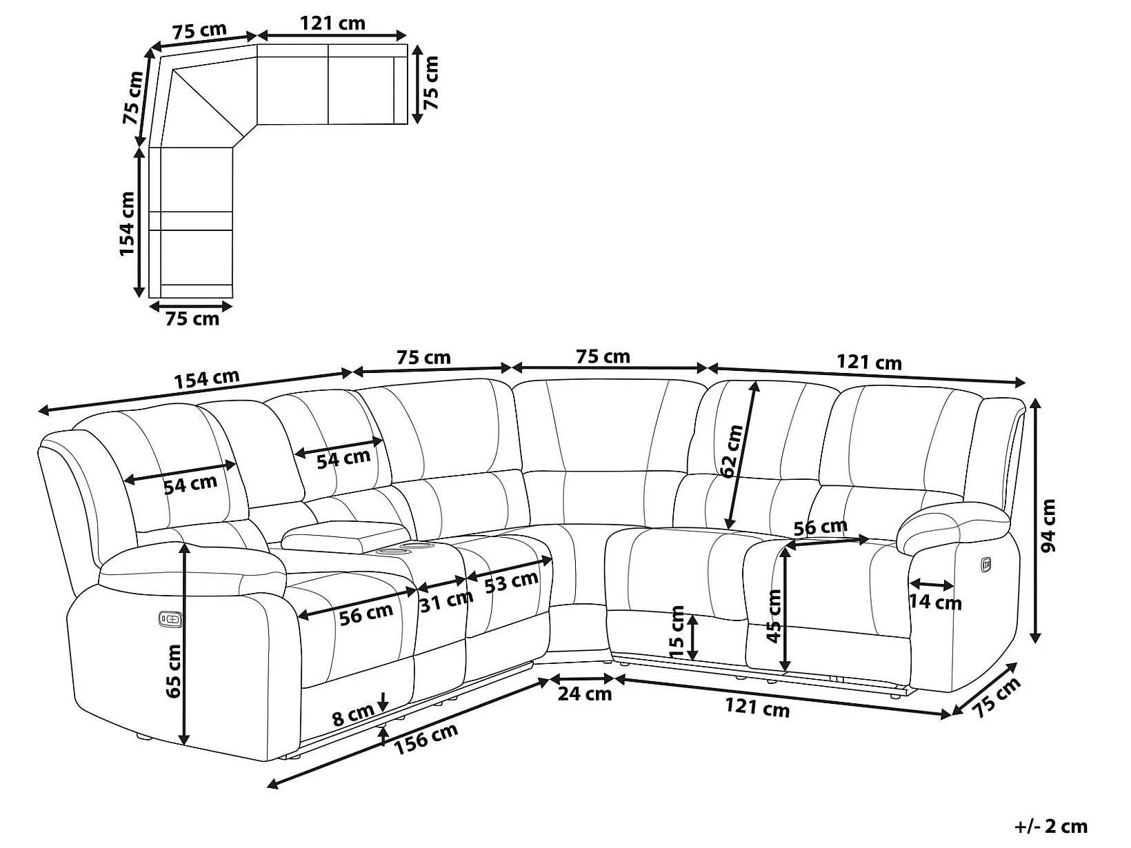 Canapé d'Angle Électrique à 5 Places avec Port USB en Tissu Marron Rokke
