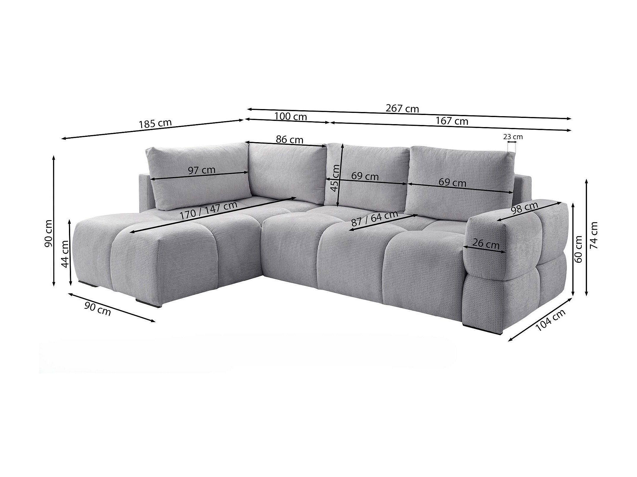 Canapé d’angle en chenille – convertible avec coffre de rangement – blanc – réversible – TAREMI