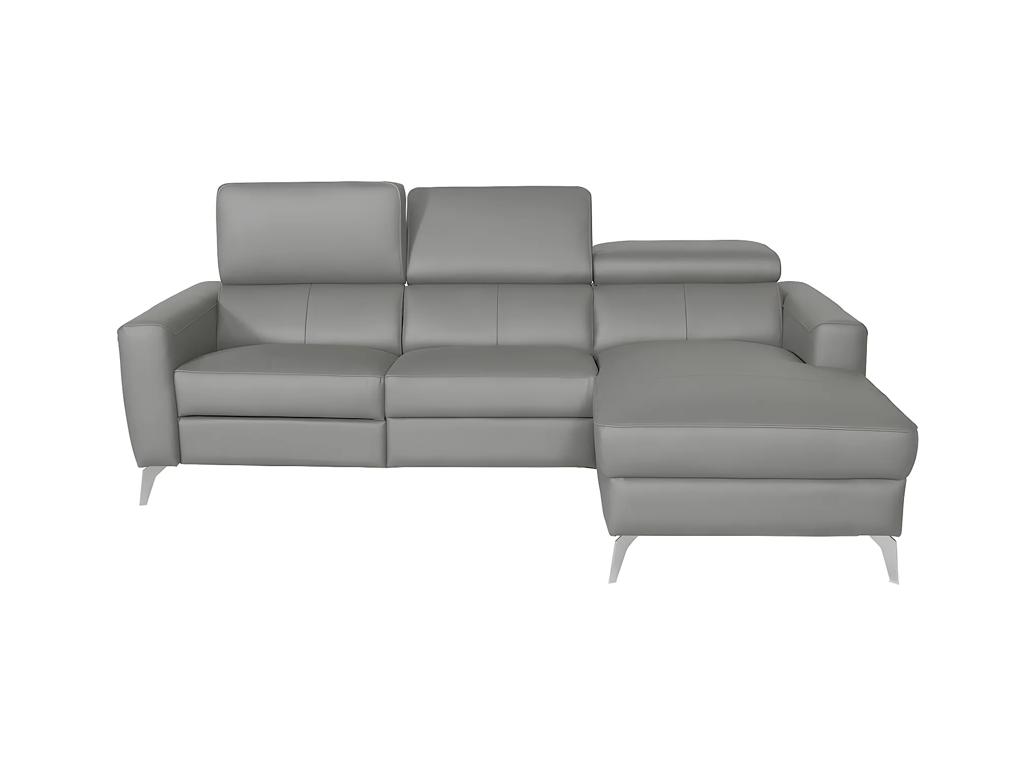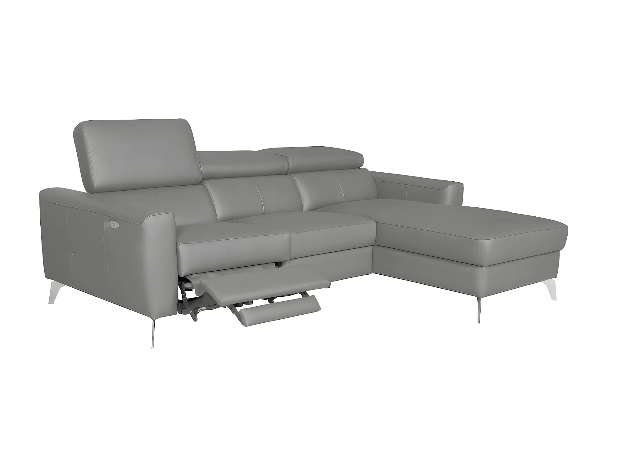 Canapé d'angle en cuir italien de luxe 5 places BOTERO, avec relax électrique, gris clair, angle droit