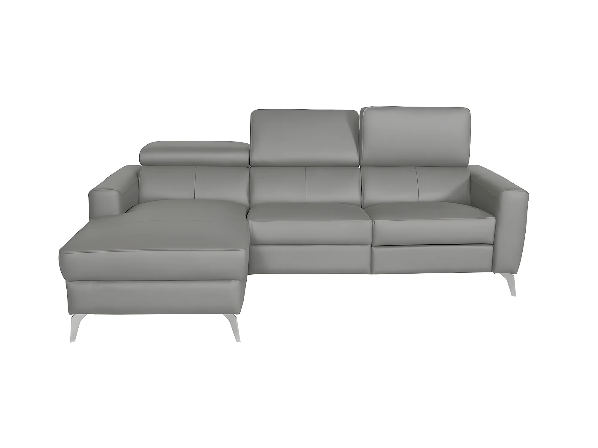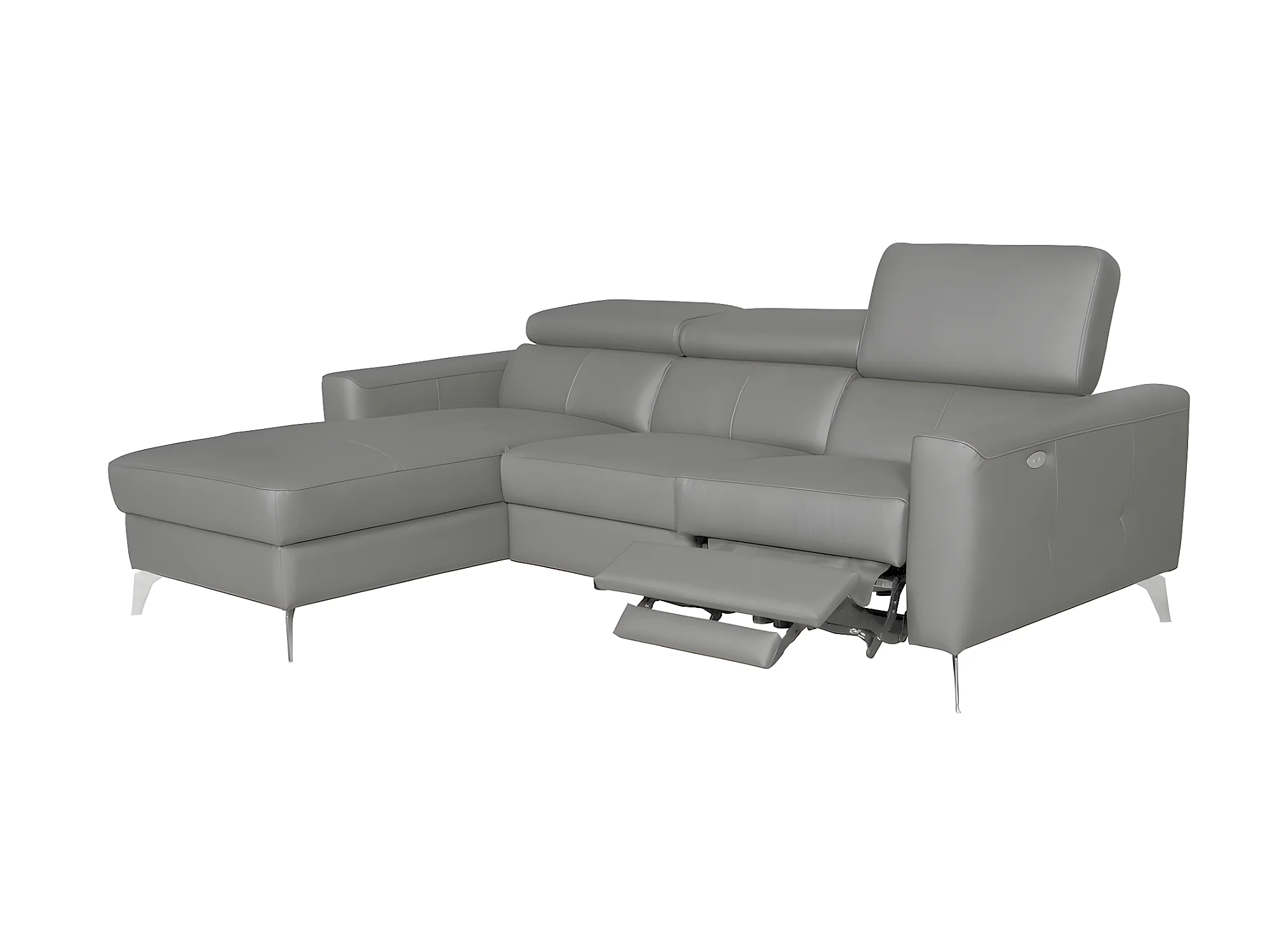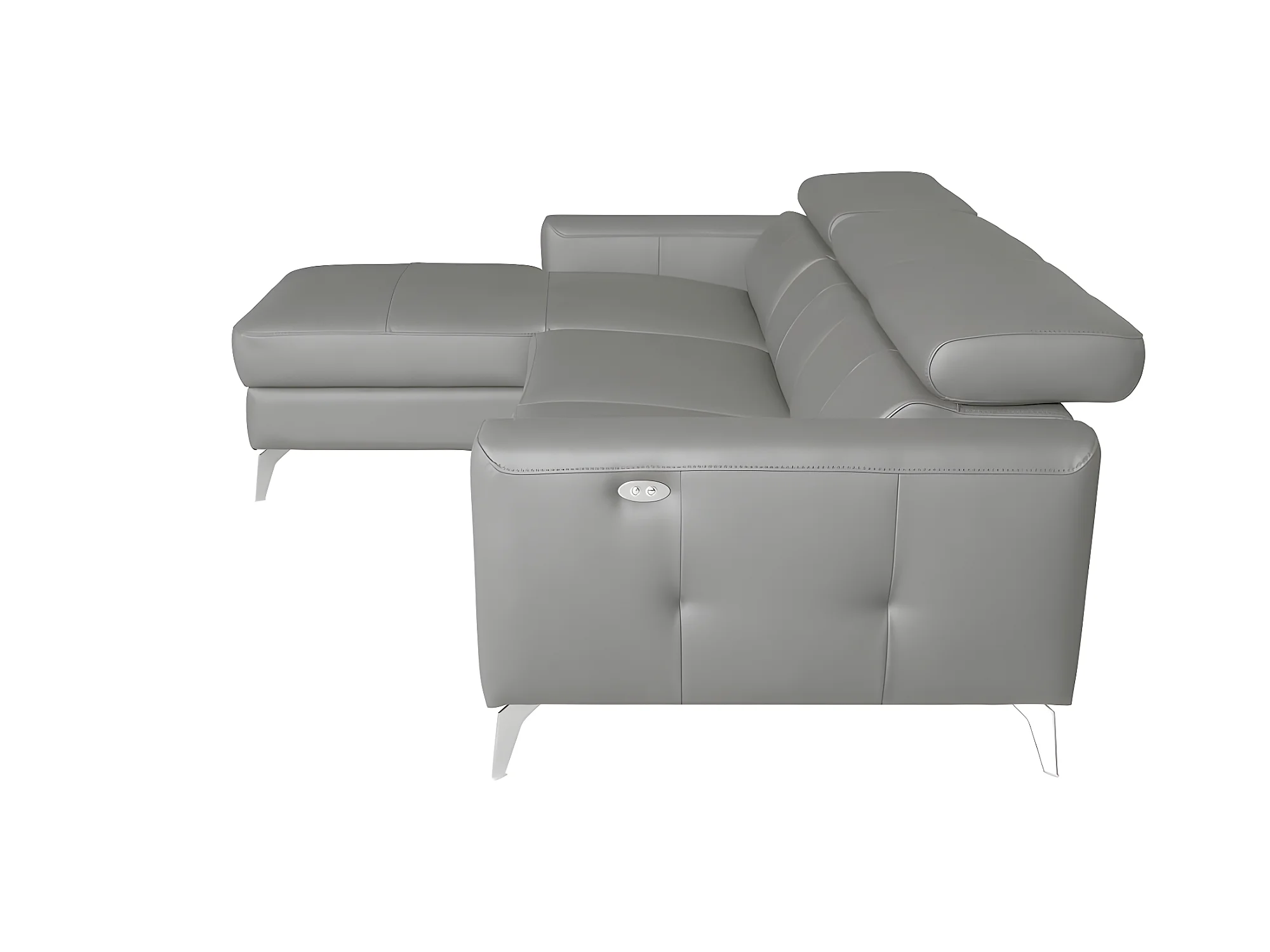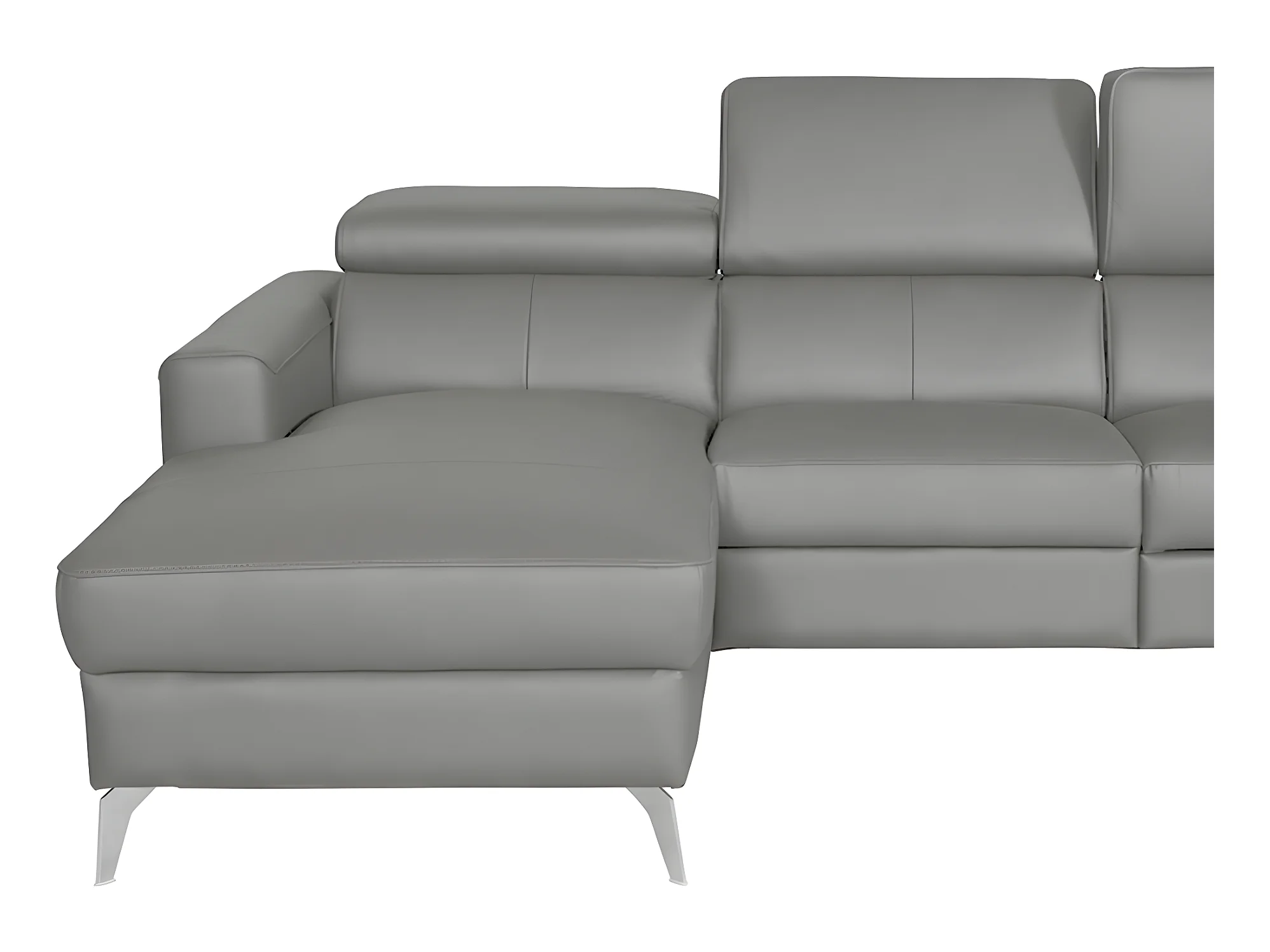 Canapé d'angle en cuir italien de luxe 5 places BOTERO, avec relax électrique, gris clair, angle gauche