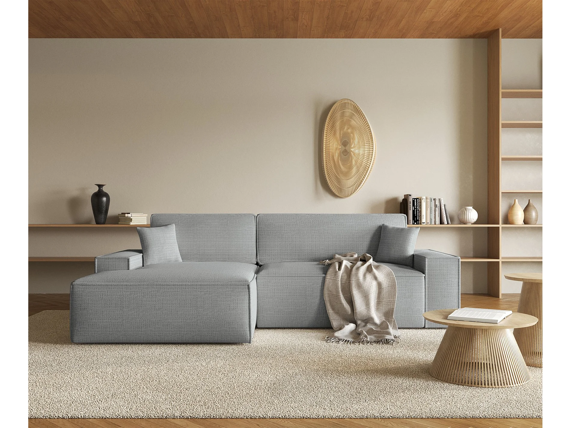 Canapé d'angle en forme de L avec fonction de couchage - tissu chenille - gris clair - côté gauche - FARESE NEW