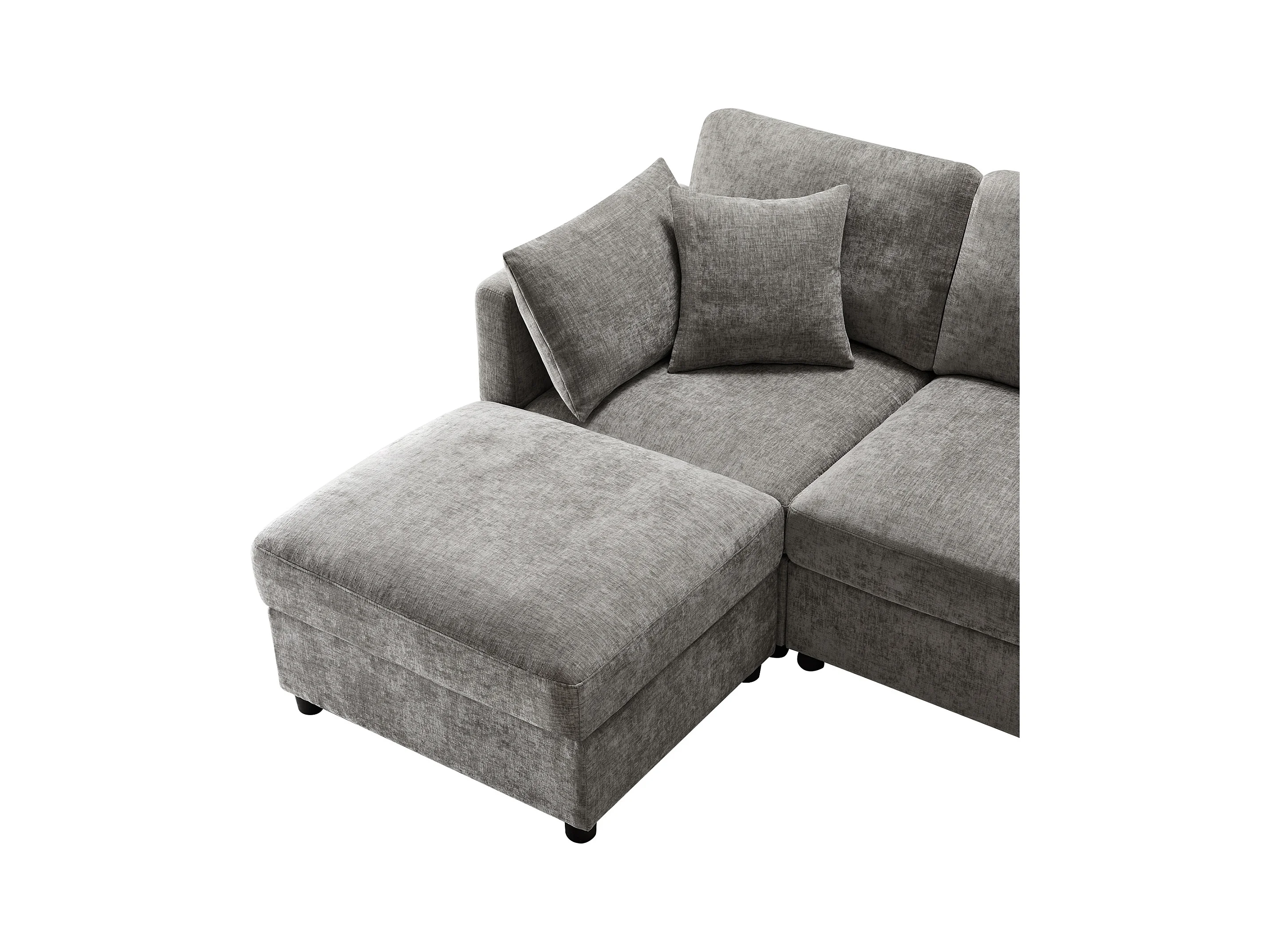 Canapé d'angle en L - 3 places - avec repose-pieds - 4 coussins - accoudoirs réglables - Gris