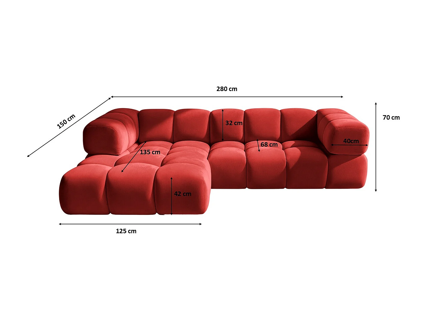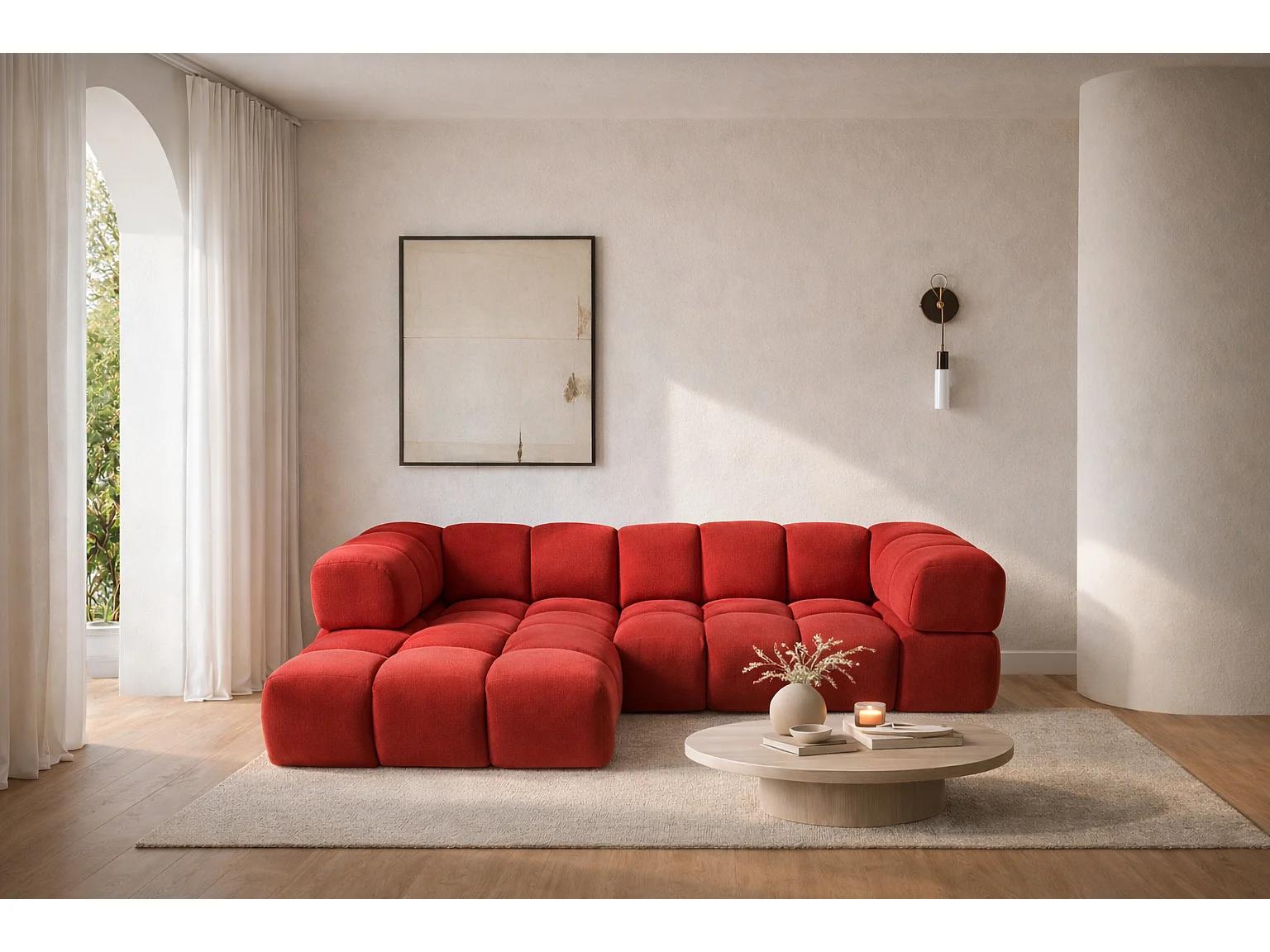 Canapé d'angle en L Averro, tissu Bluvel, bordeaux, à gauche