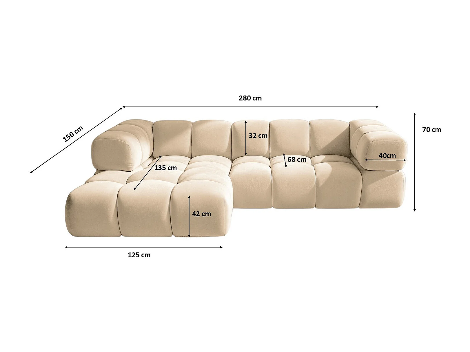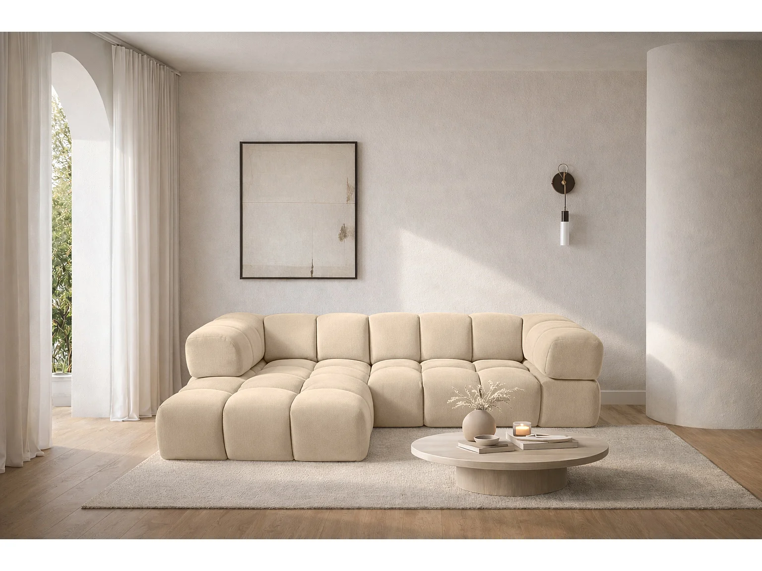 Canapé d'angle en L Averro, tissu Bluvel, crème, à gauche
