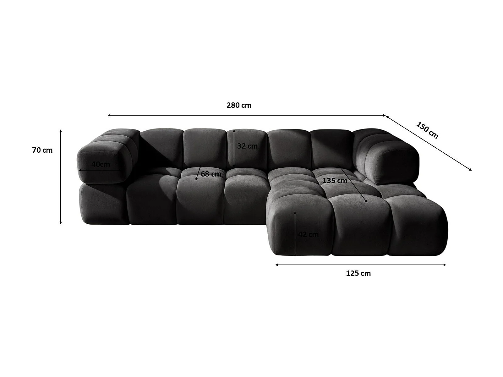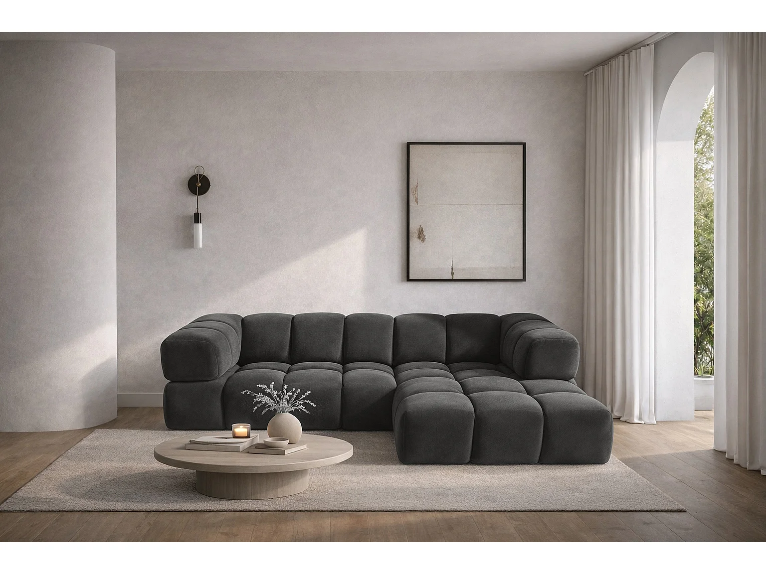 Canapé d'angle en L Averro, tissu Bluvel, noir, côté droit