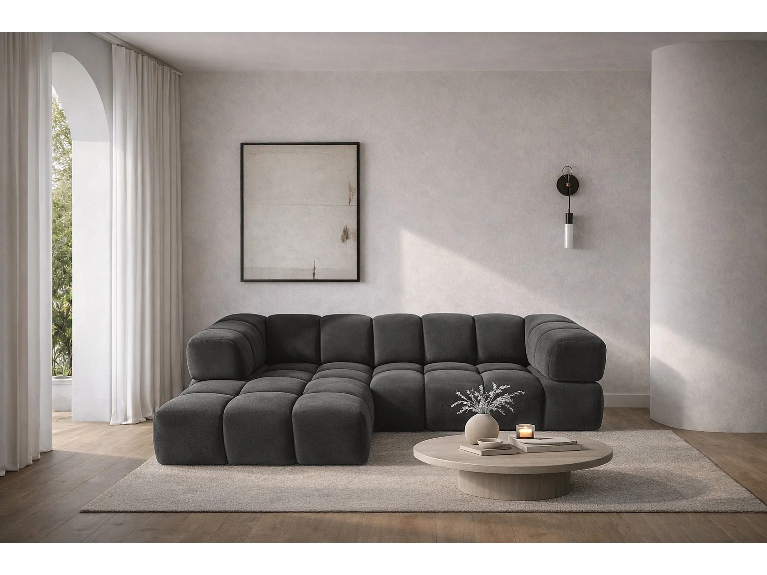 Canapé d'angle en L Averro, tissu Bluvel, noir, côté gauche