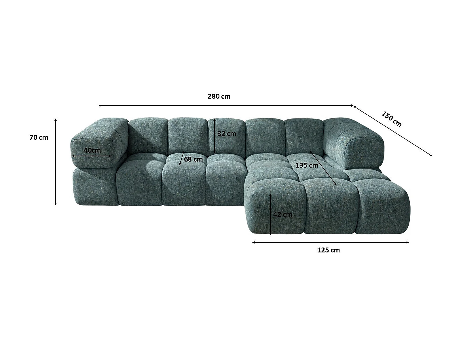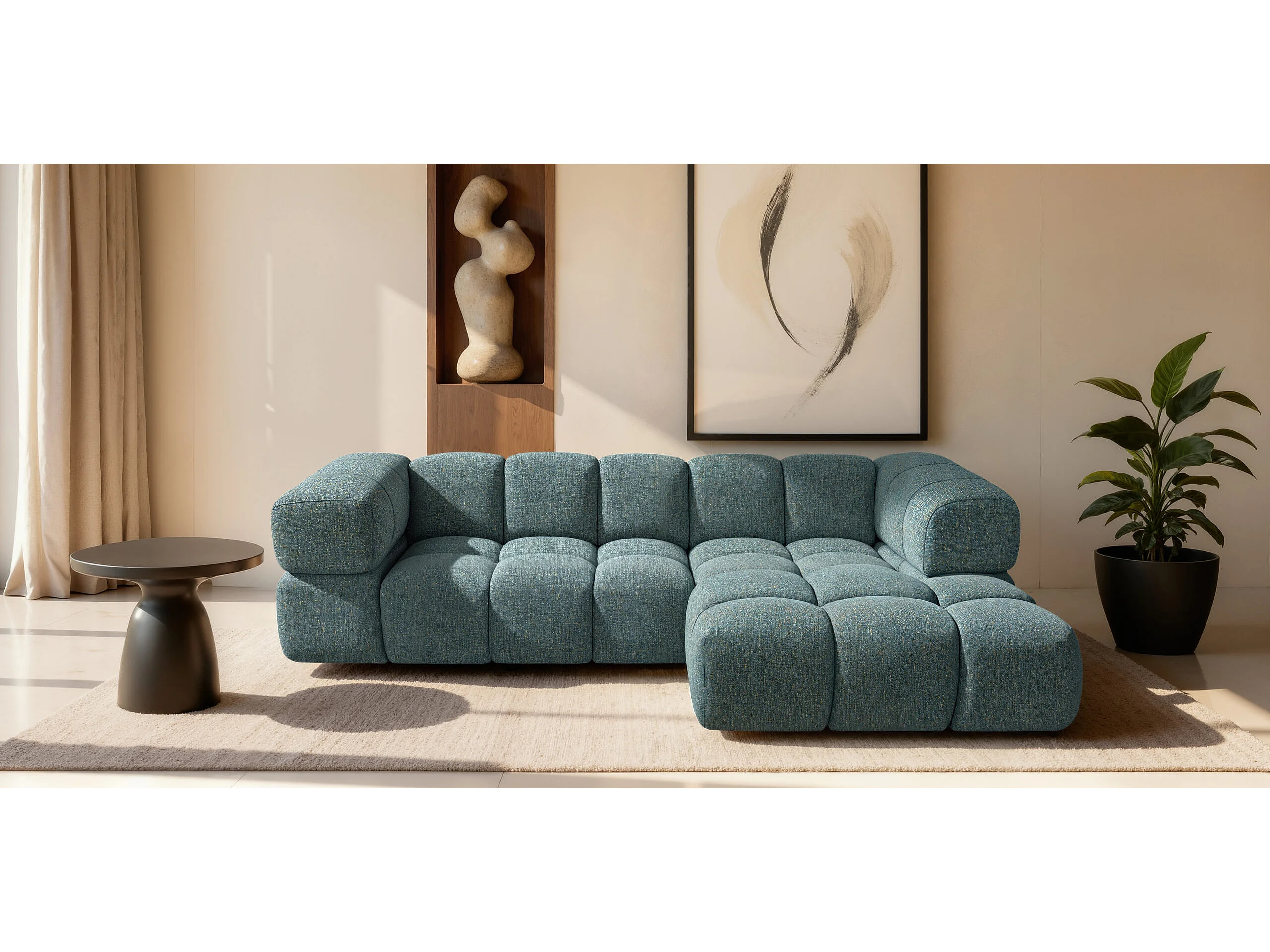 Canapé d'angle en L Averro, tissu Puente, bleu azur, côté droit