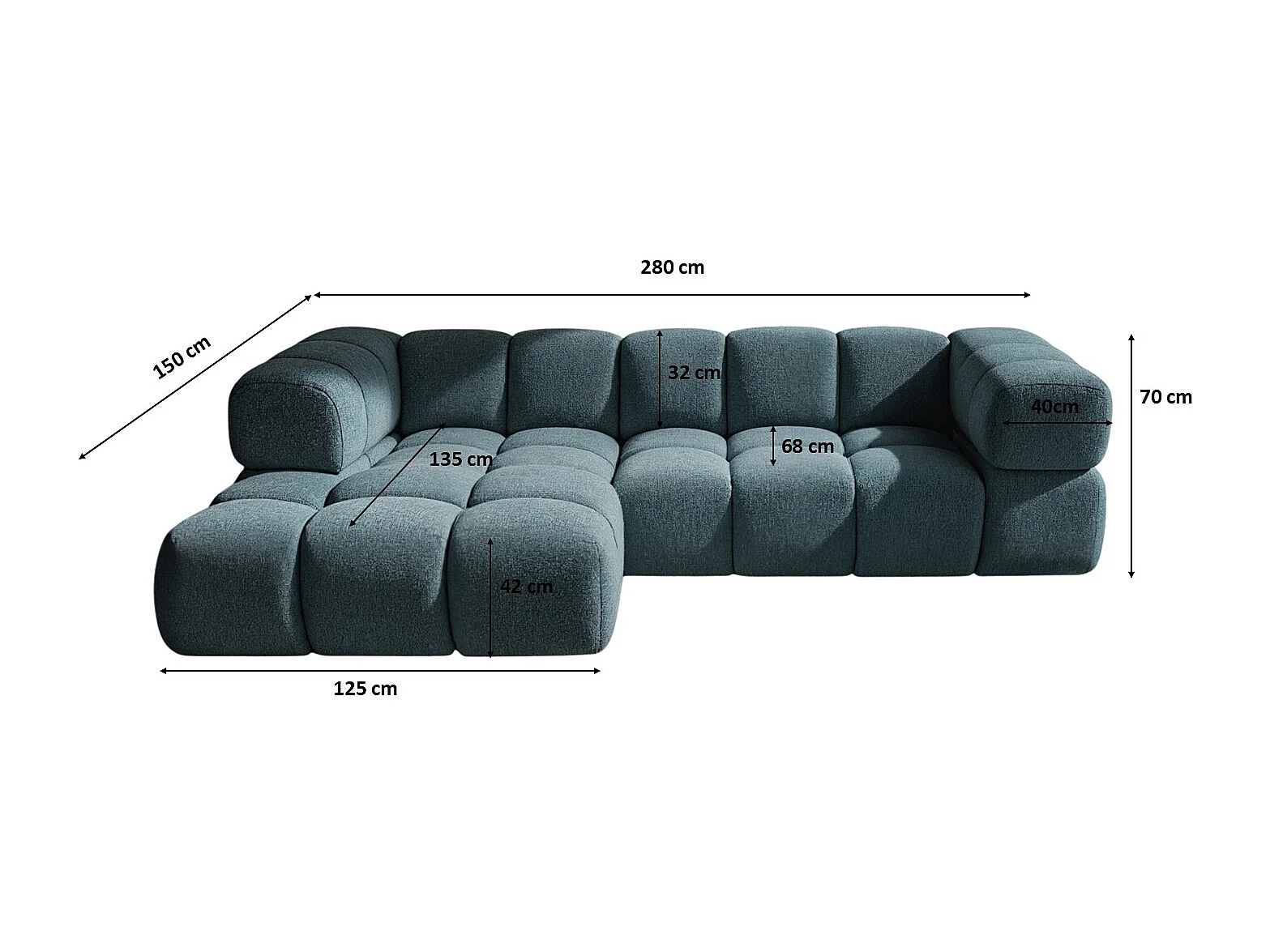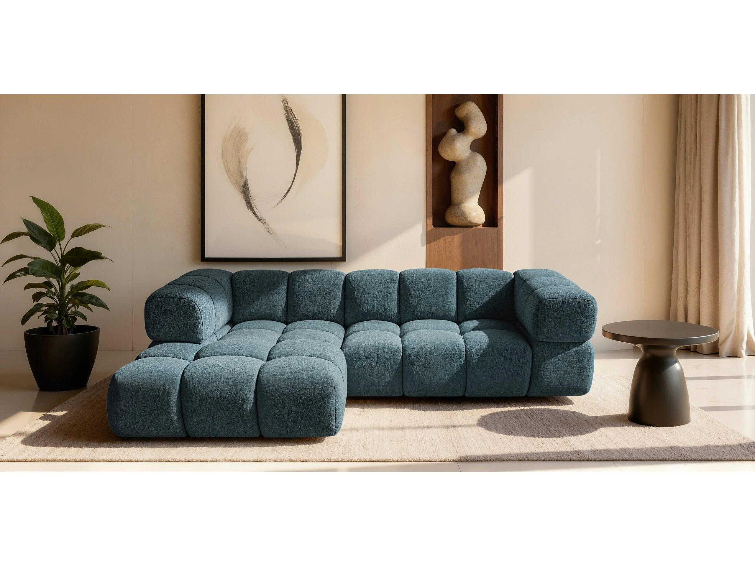 Canapé d'angle en L Averro, tissu Puente, couleur pétrole, à gauche