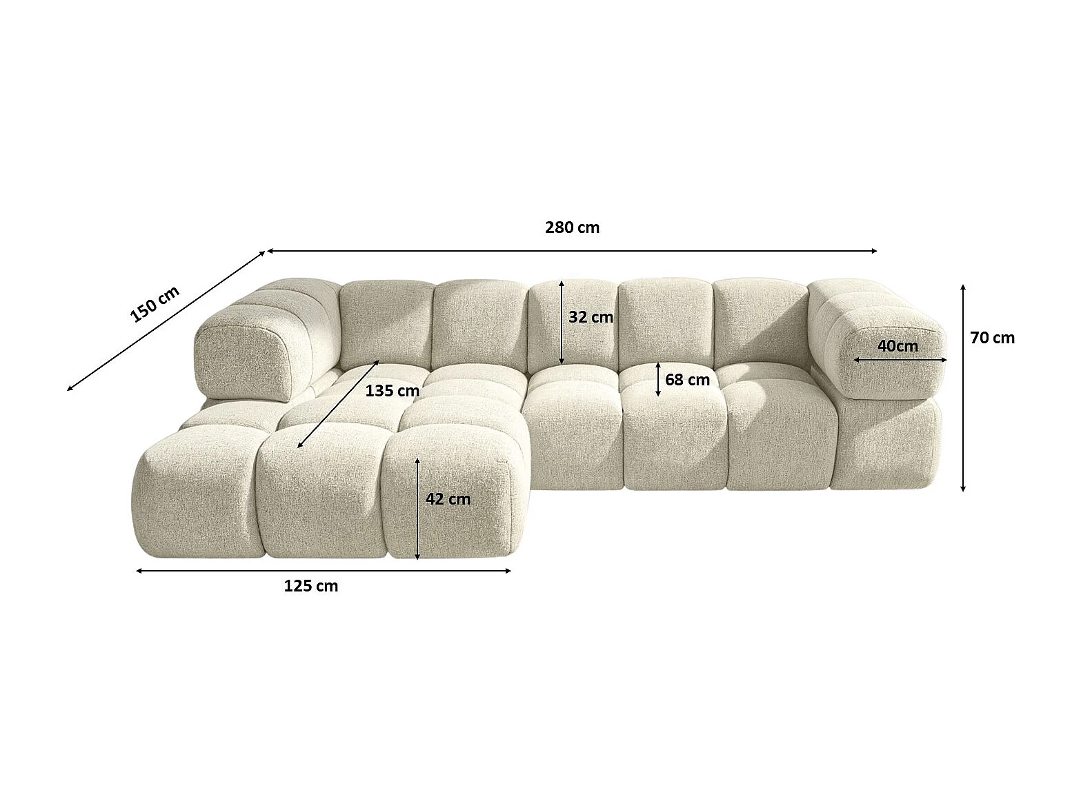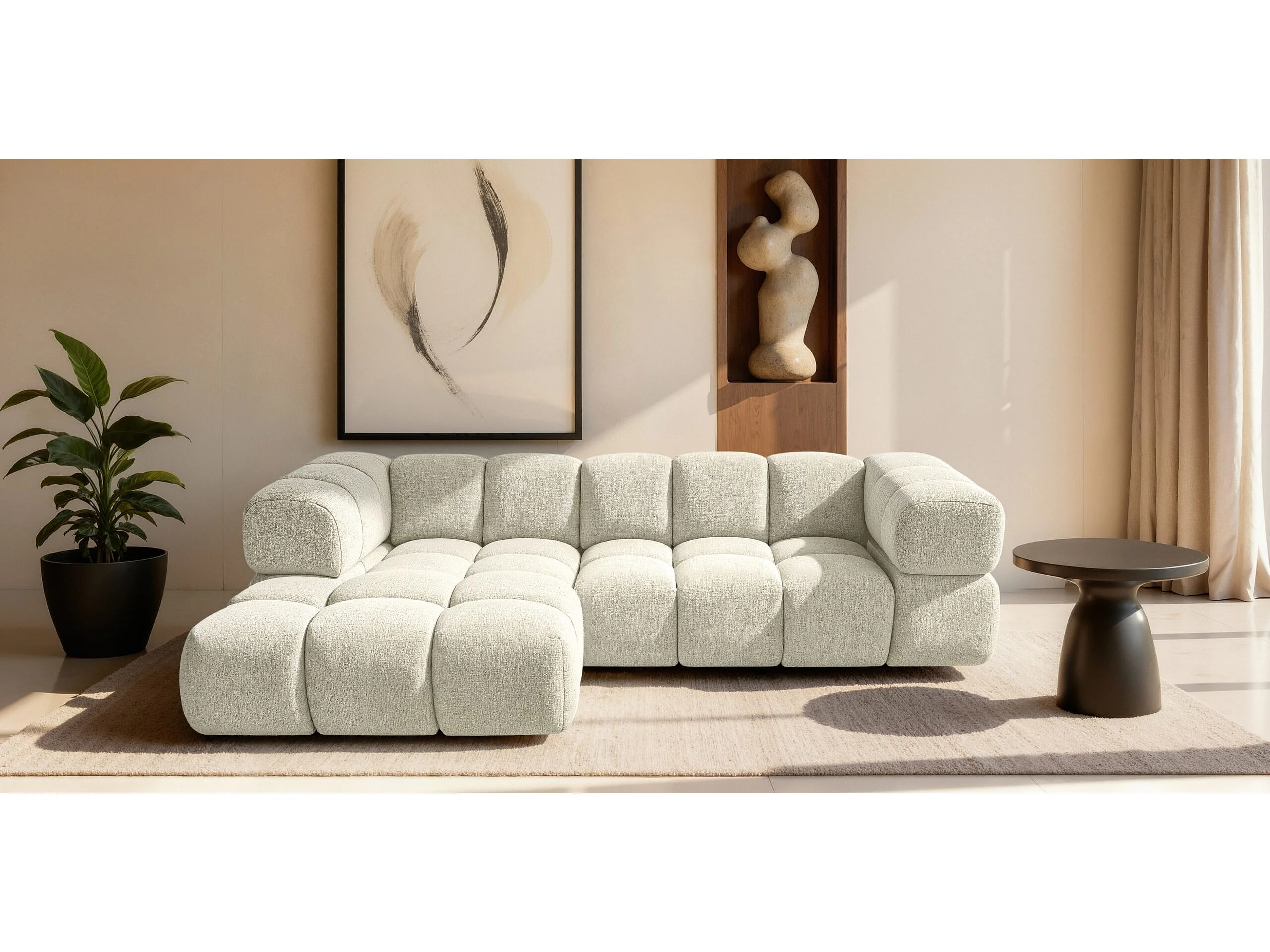 Canapé d'angle en L Averro, tissu Puente, écru, gauche
