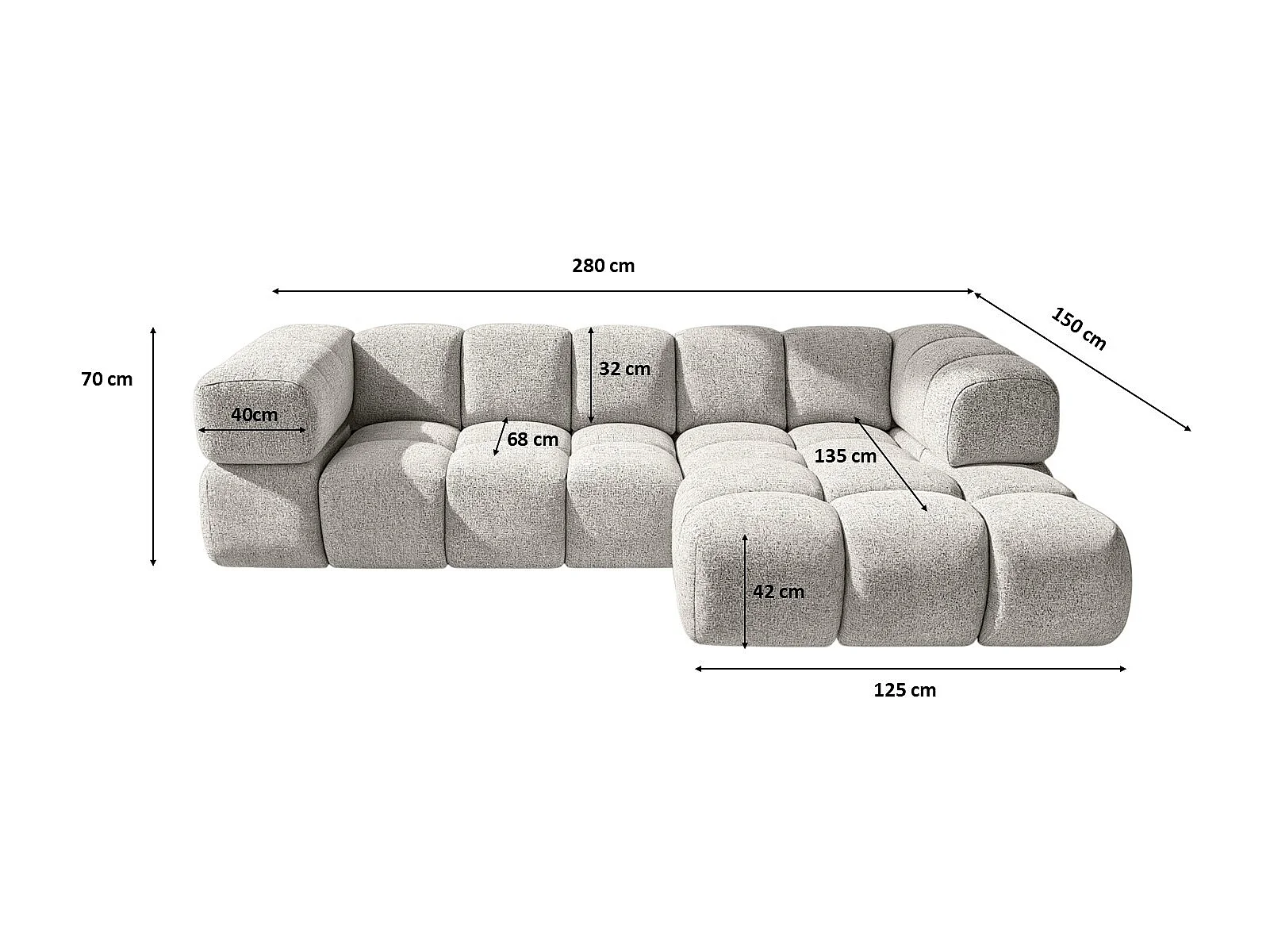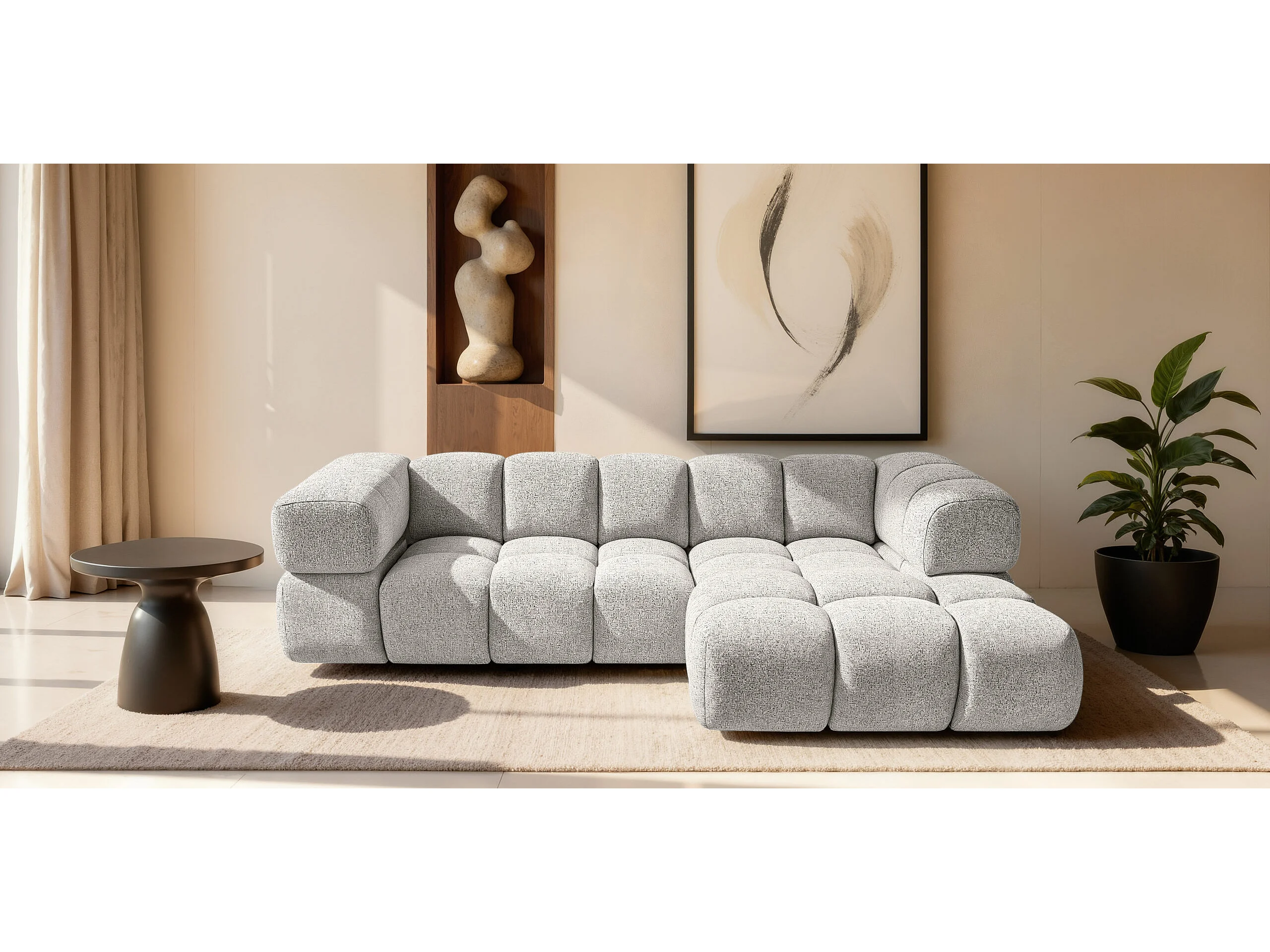 Canapé d'angle en L Averro, tissu Puente, gris clair, à droite