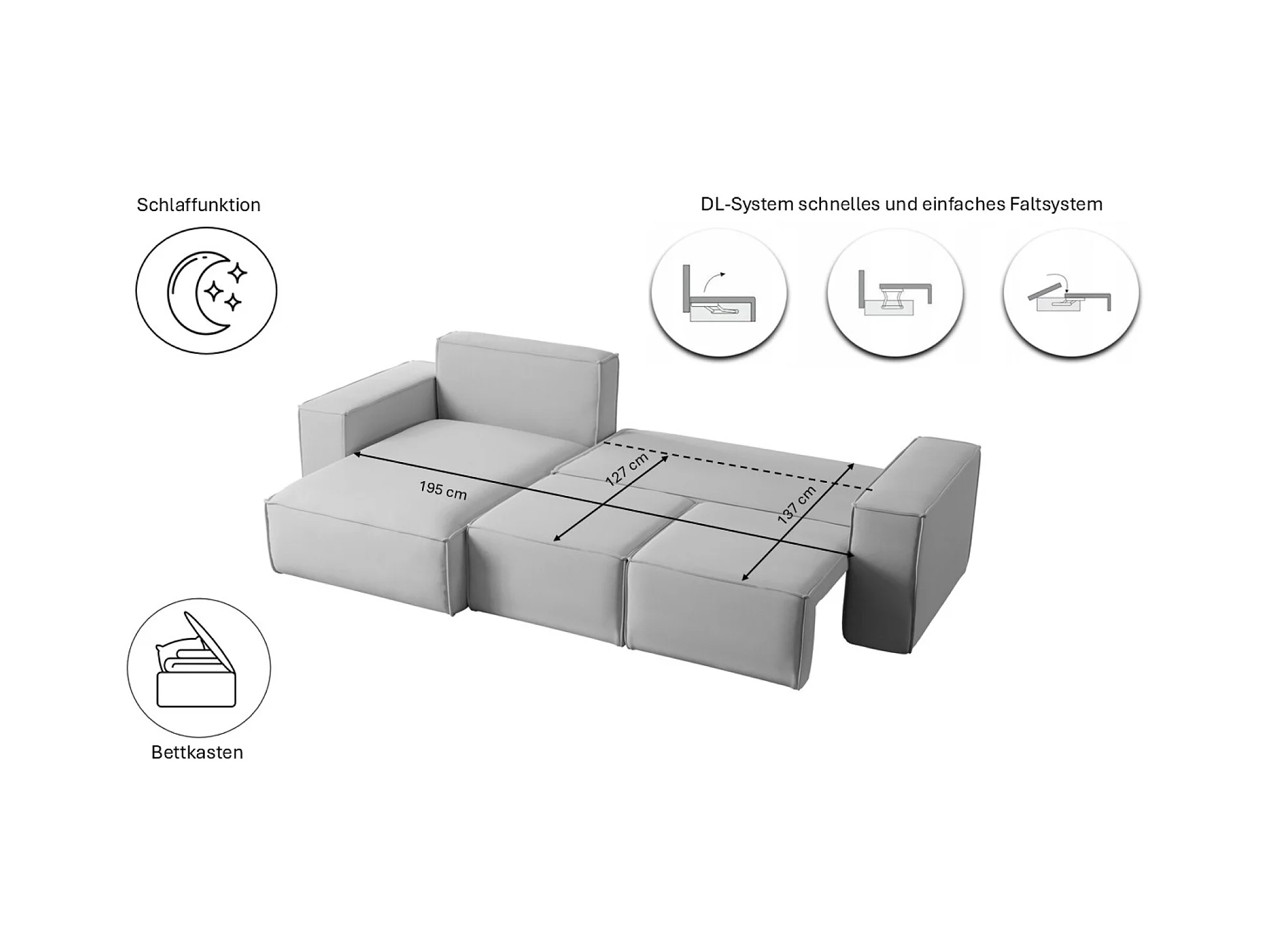 Canapé d’angle COCO U avec fonction de couchage Couleur : TILIA 17