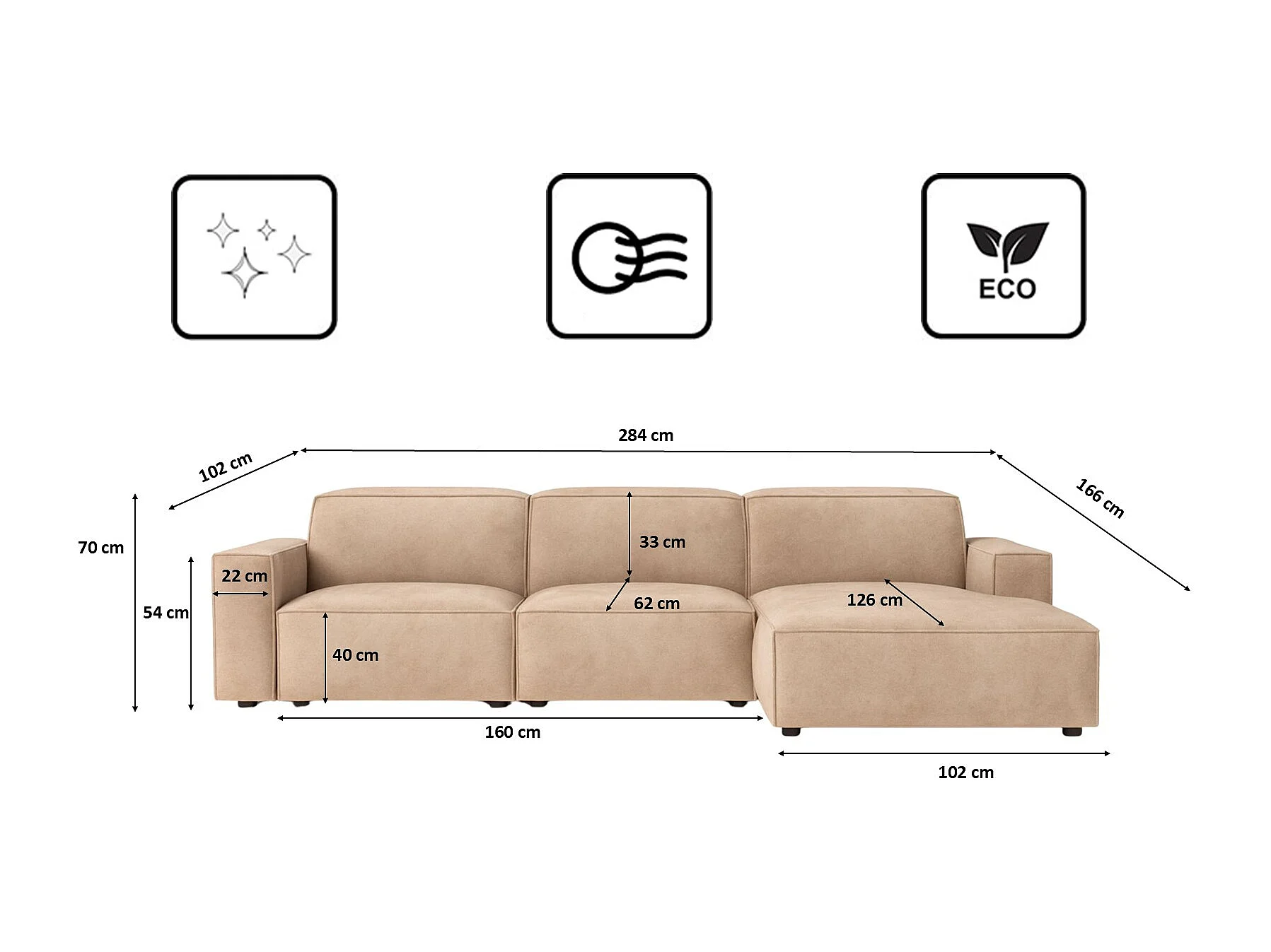Canapé d'angle en L Cursal, tissu Salvador, beige, droit