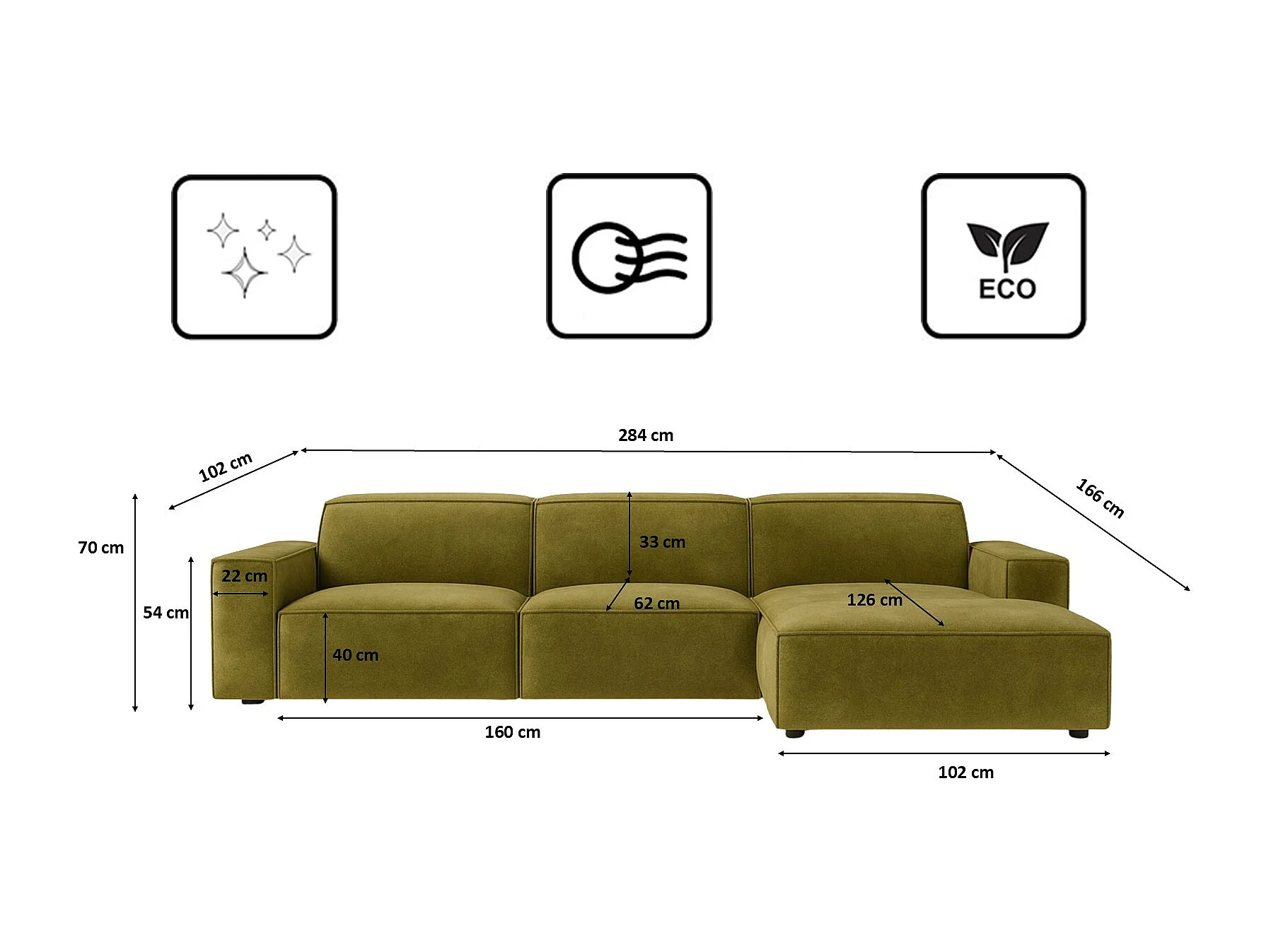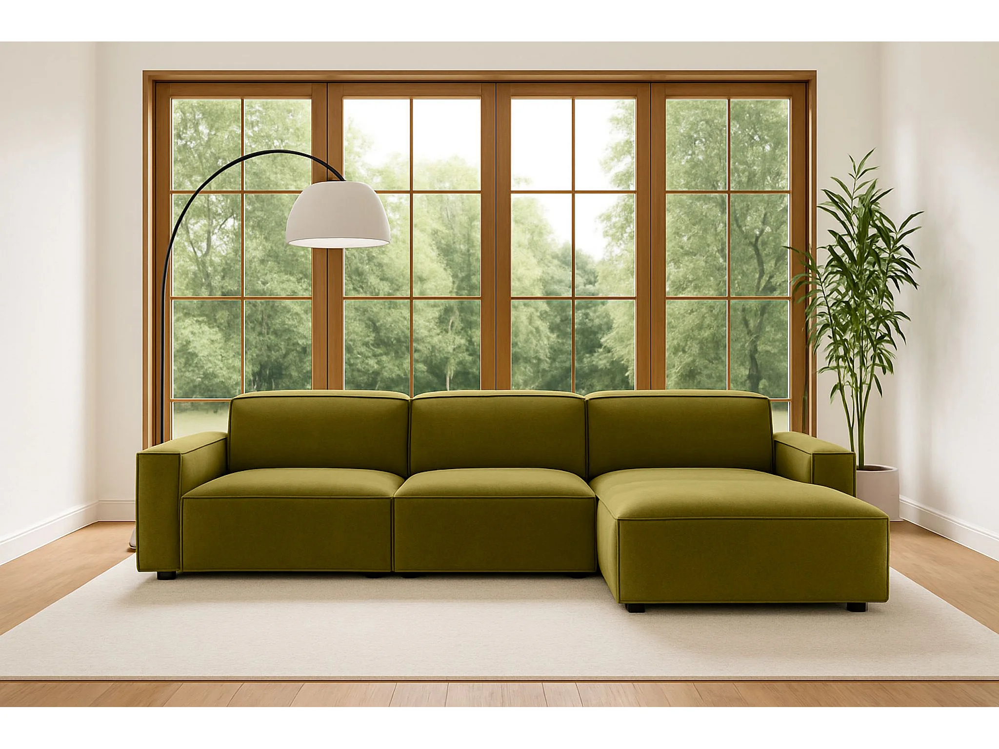 Canapé d'angle en L Cursal, tissu Salvador, olive, droit