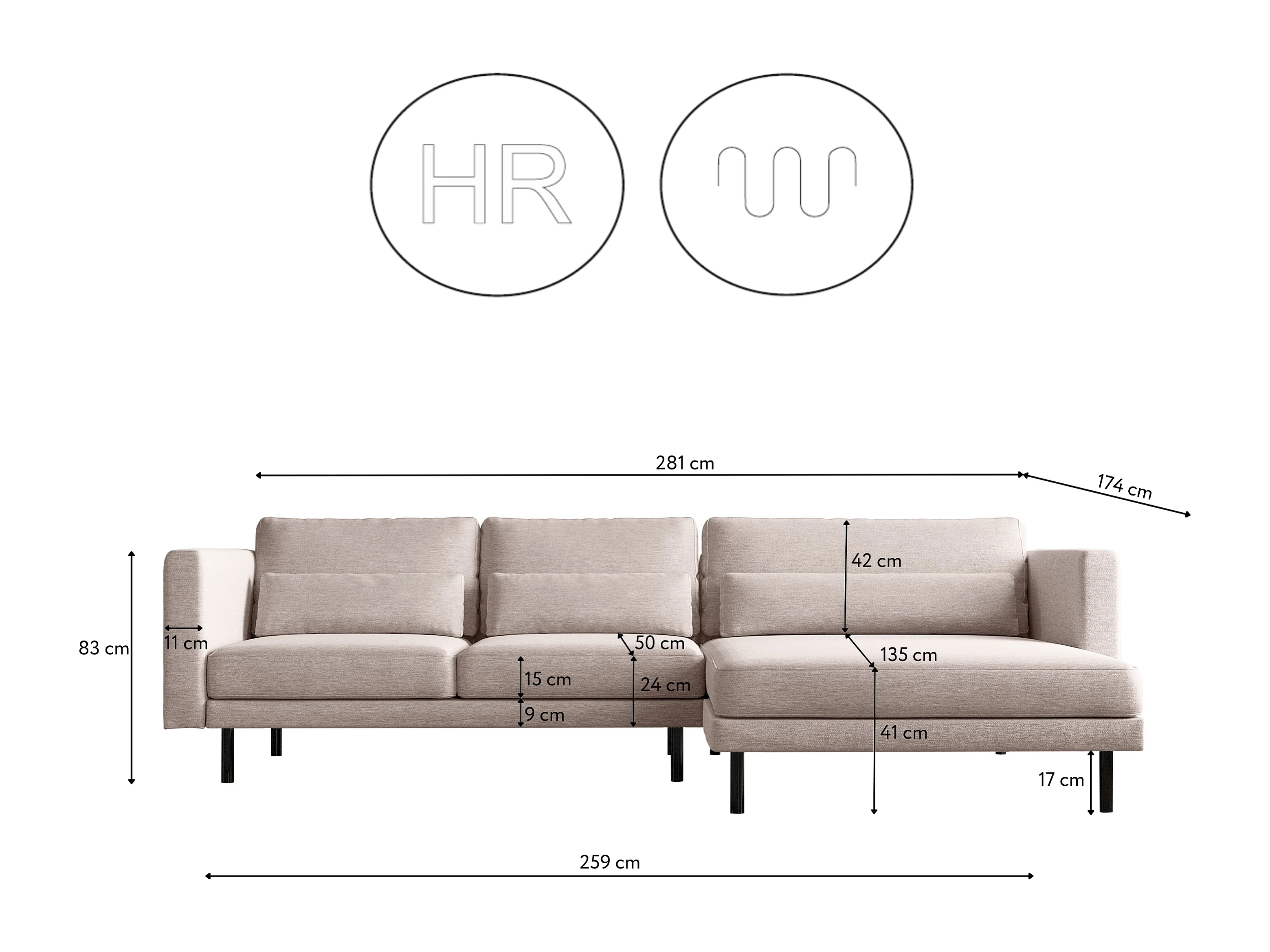 Canapé d'angle en L Dani moderne et spacieux en tissu Verita Beige Droite