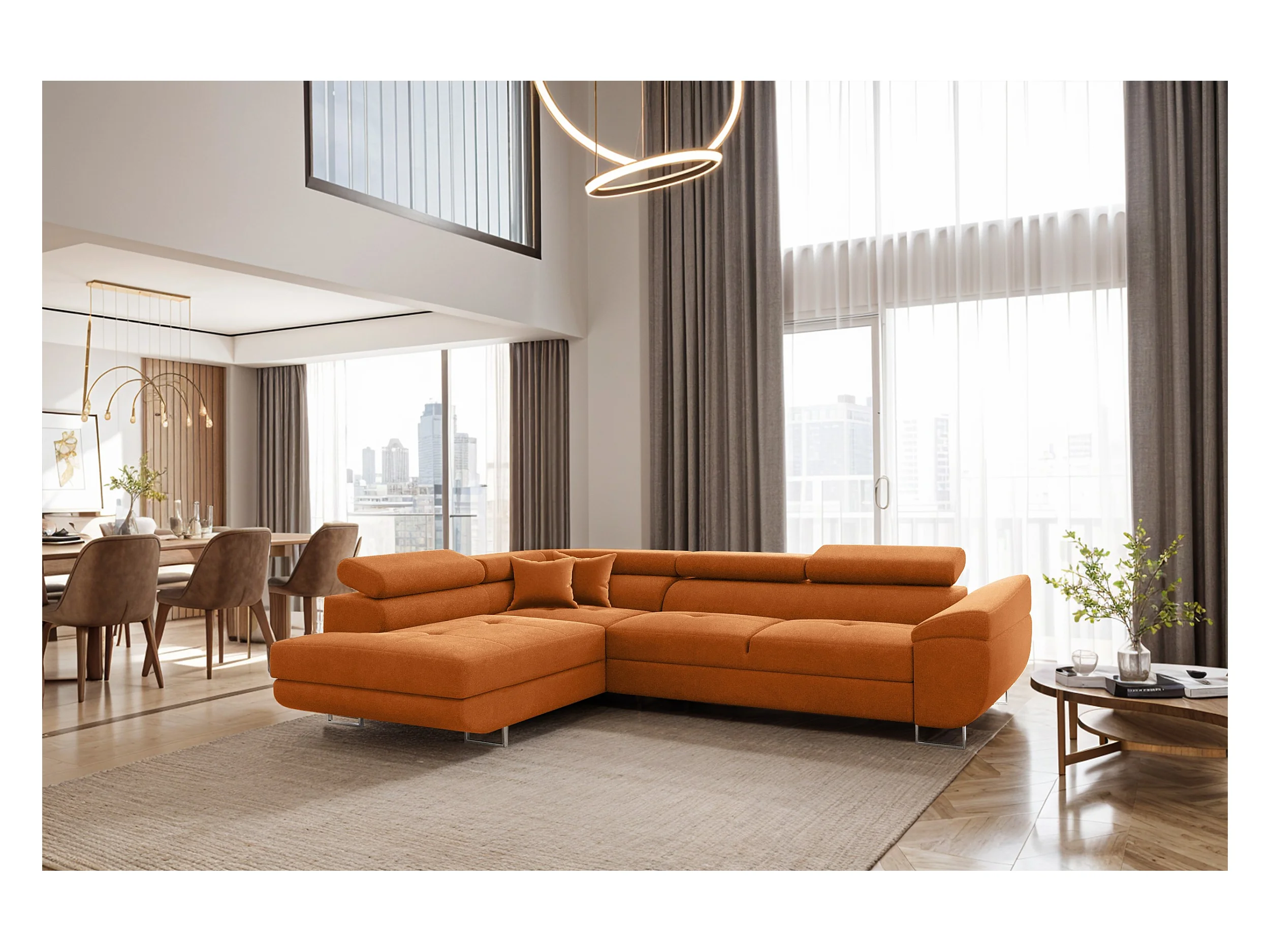 Canapé d'angle convertible en tissu orange LAZARE - Angle gauche