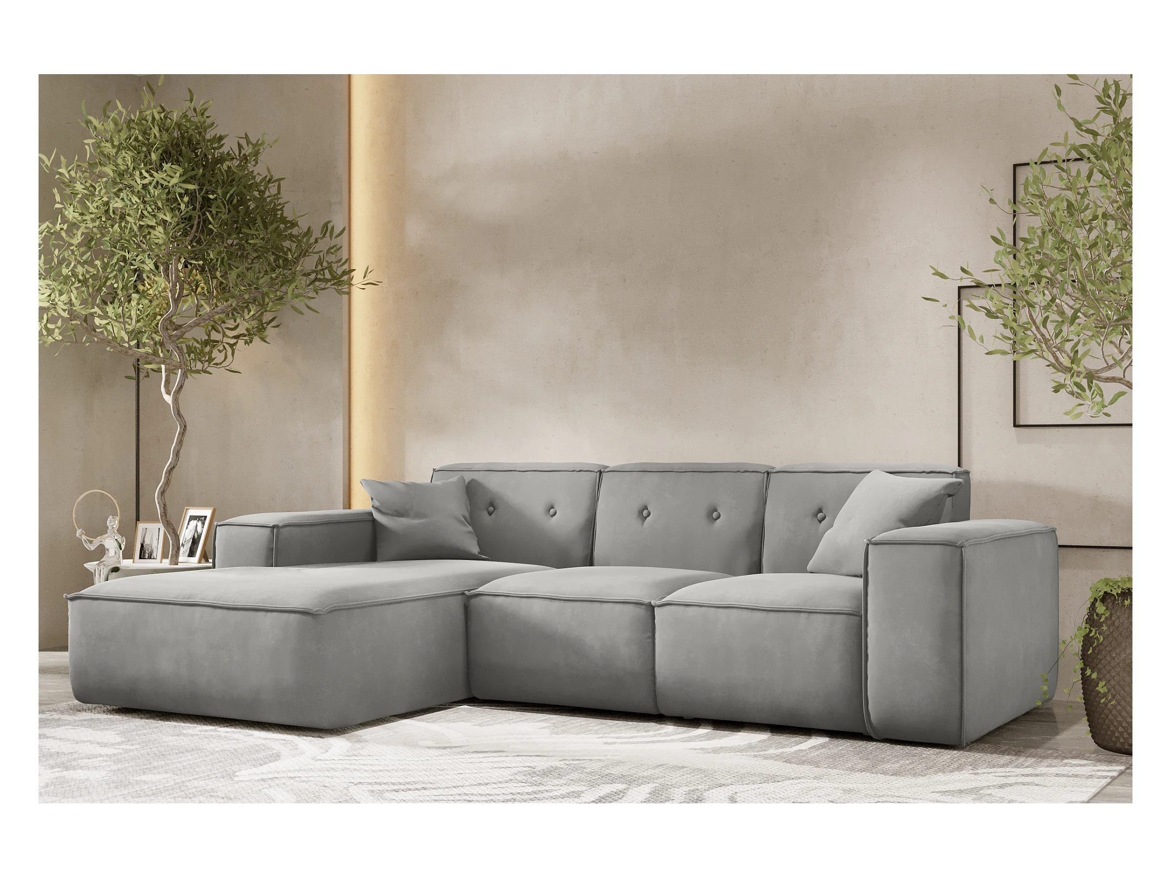 Canapé d'angle en L PULA, tissu Opera Velvet, gris, gauche