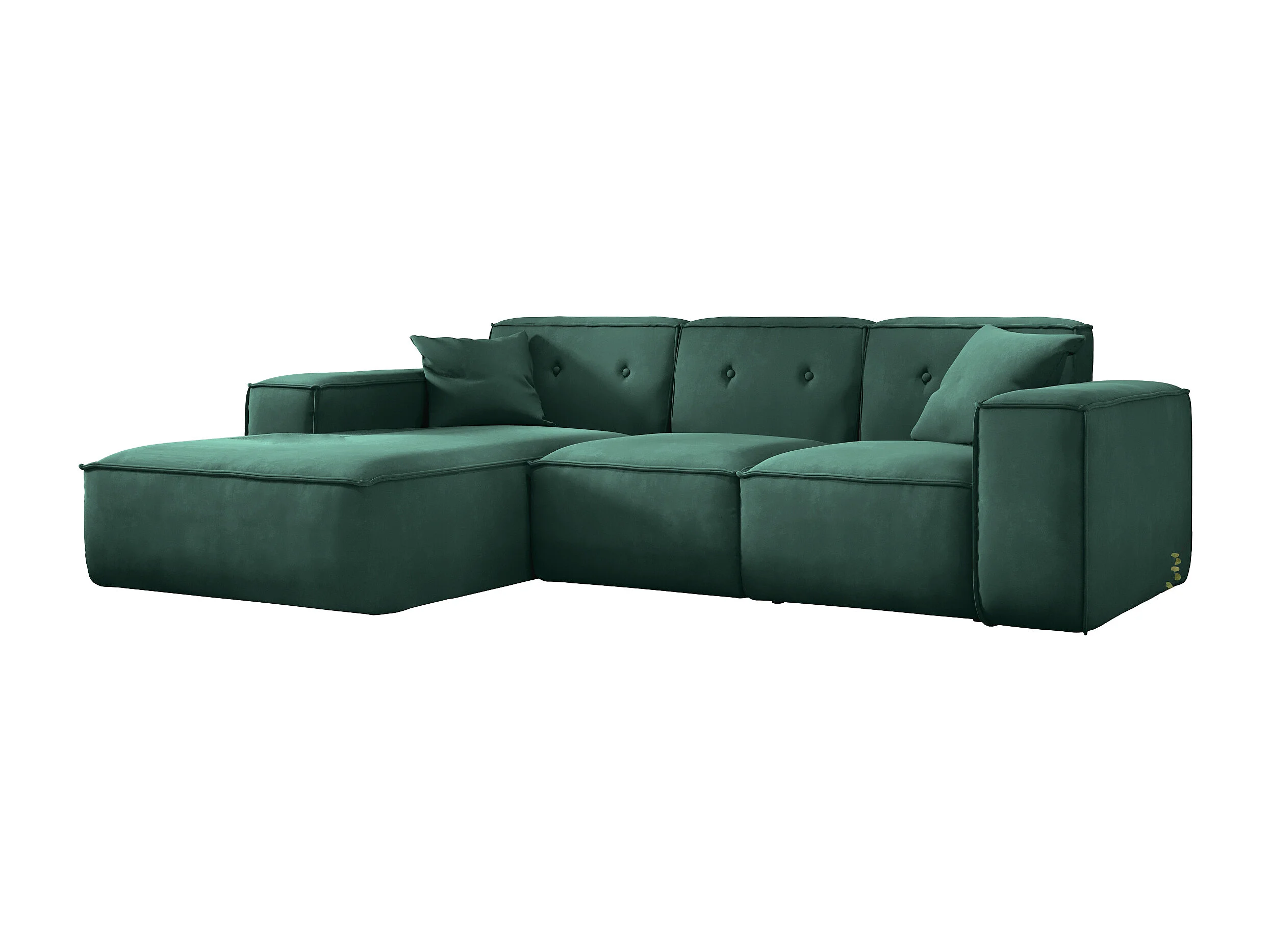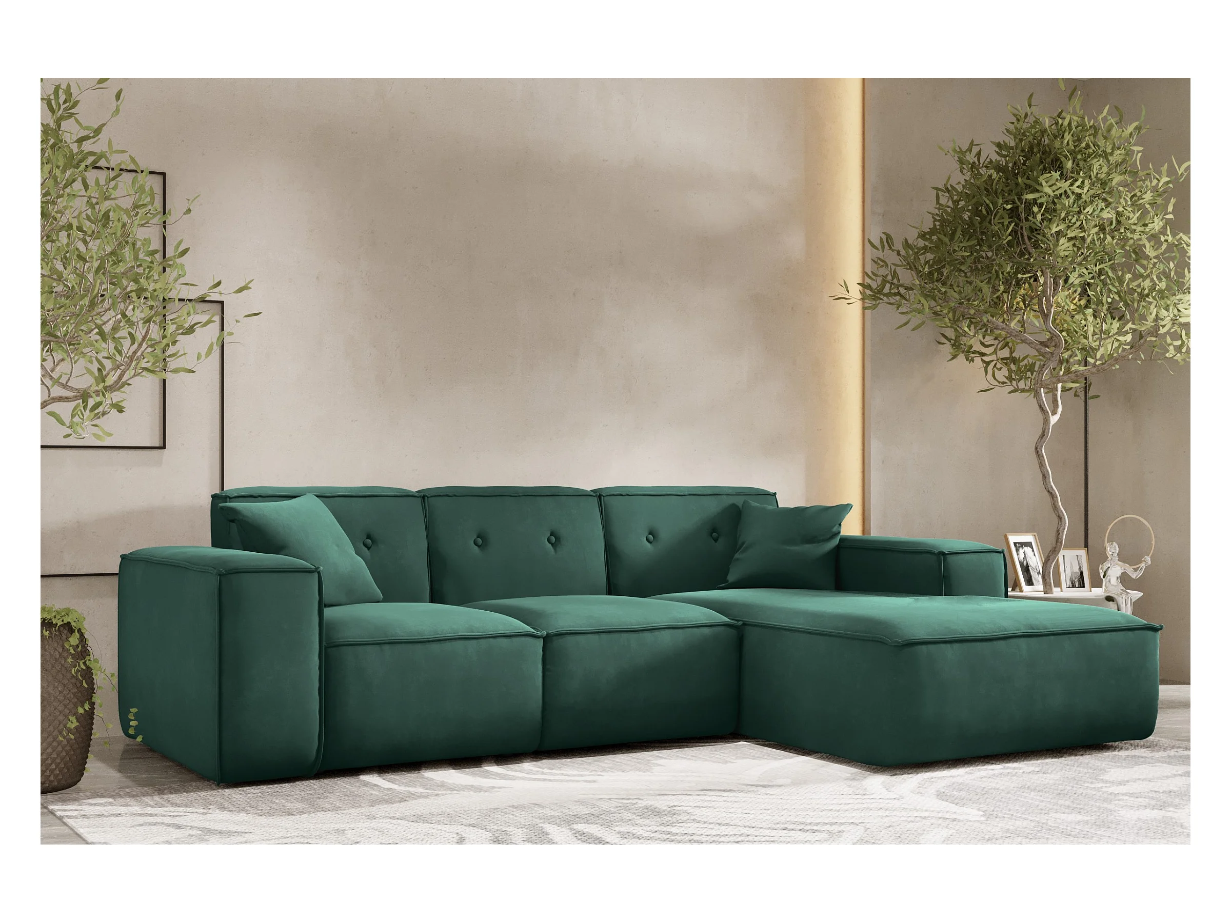 Canapé d'angle en L PULA, tissu Opera Velvet, vert, droit