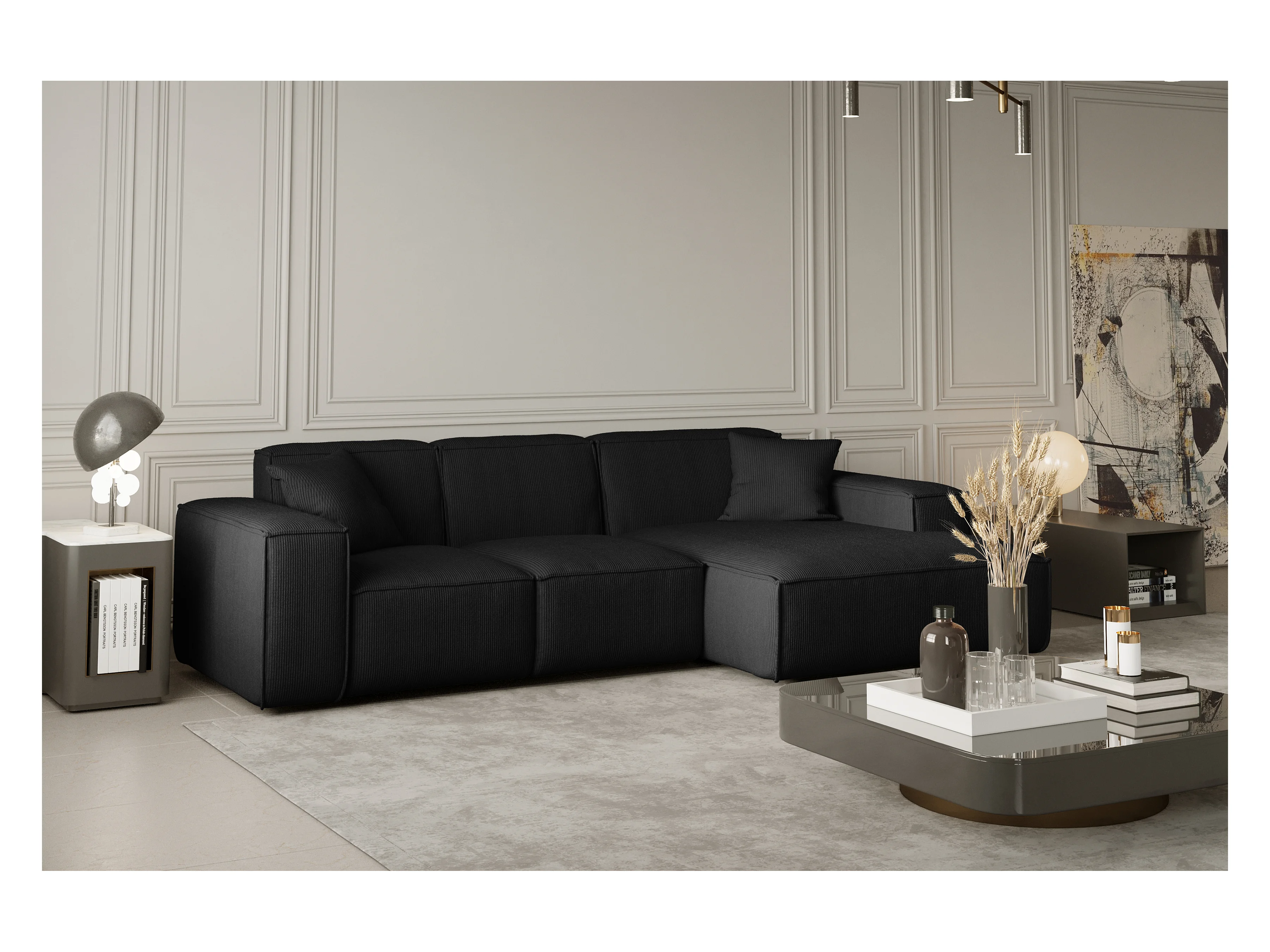 Canapé d'angle en L PULA, tissu Opera Velvet, noir, droit