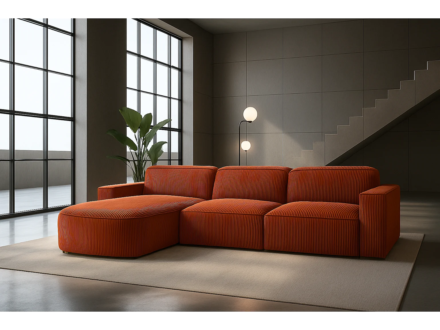Canapé d'angle en L Round Cursal, tissu Poso, cuivre, gauche