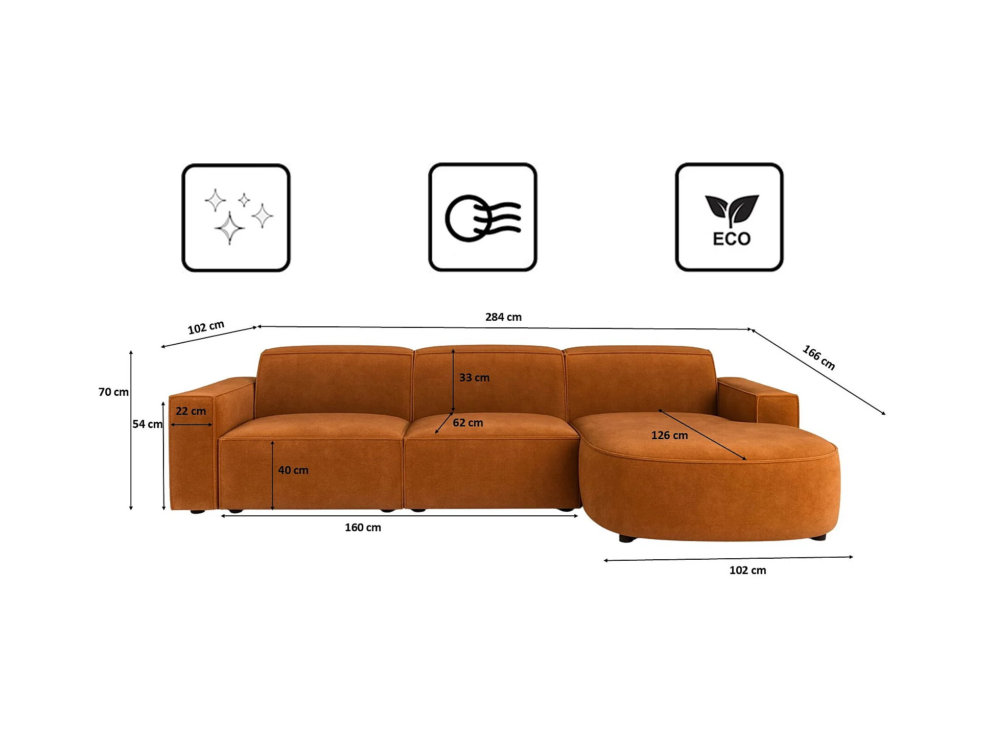 Canapé d'angle en L Round Cursal, tissu Salvador, marron, droit