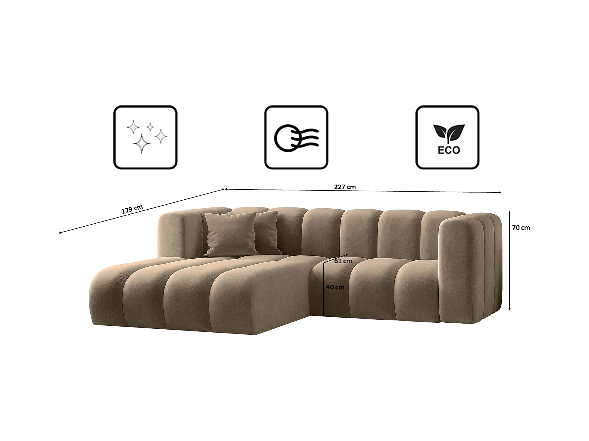 Canapé d'angle Eckouch salon NIMES tissu Verita beige chaud gauche
