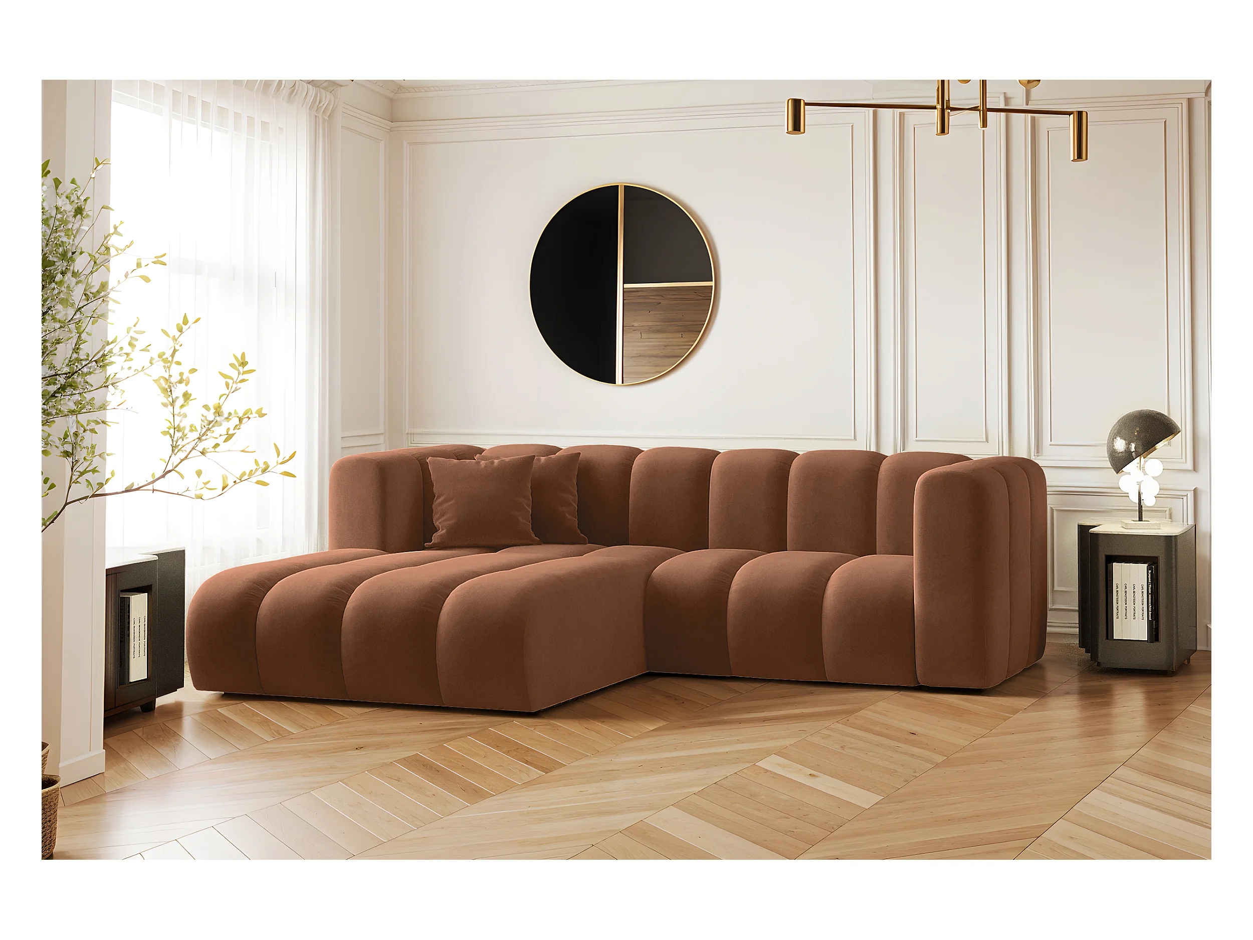 Canapé d'angle en L PULA, tissu Opera Velvet, marron, gauche
