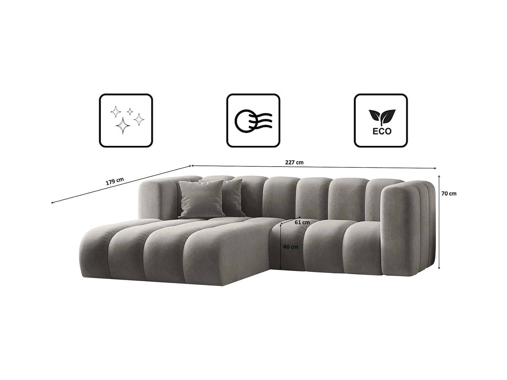 Canapé en L Modena, canapé d'angle moderne et confortable en tissu Salvador Left Grey