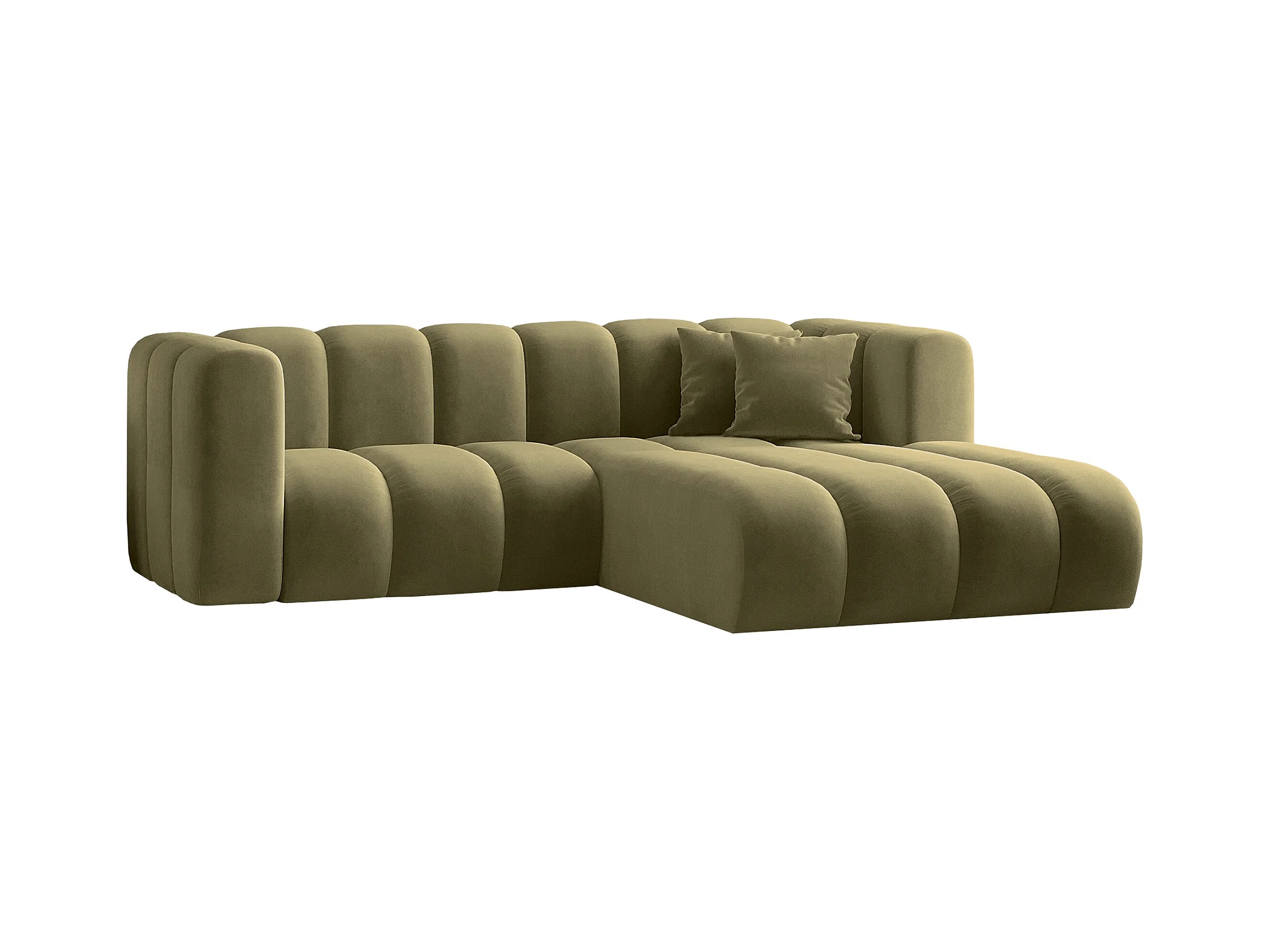 Canapé d'angle, canapé en L design Modena tissu pur source olive droite