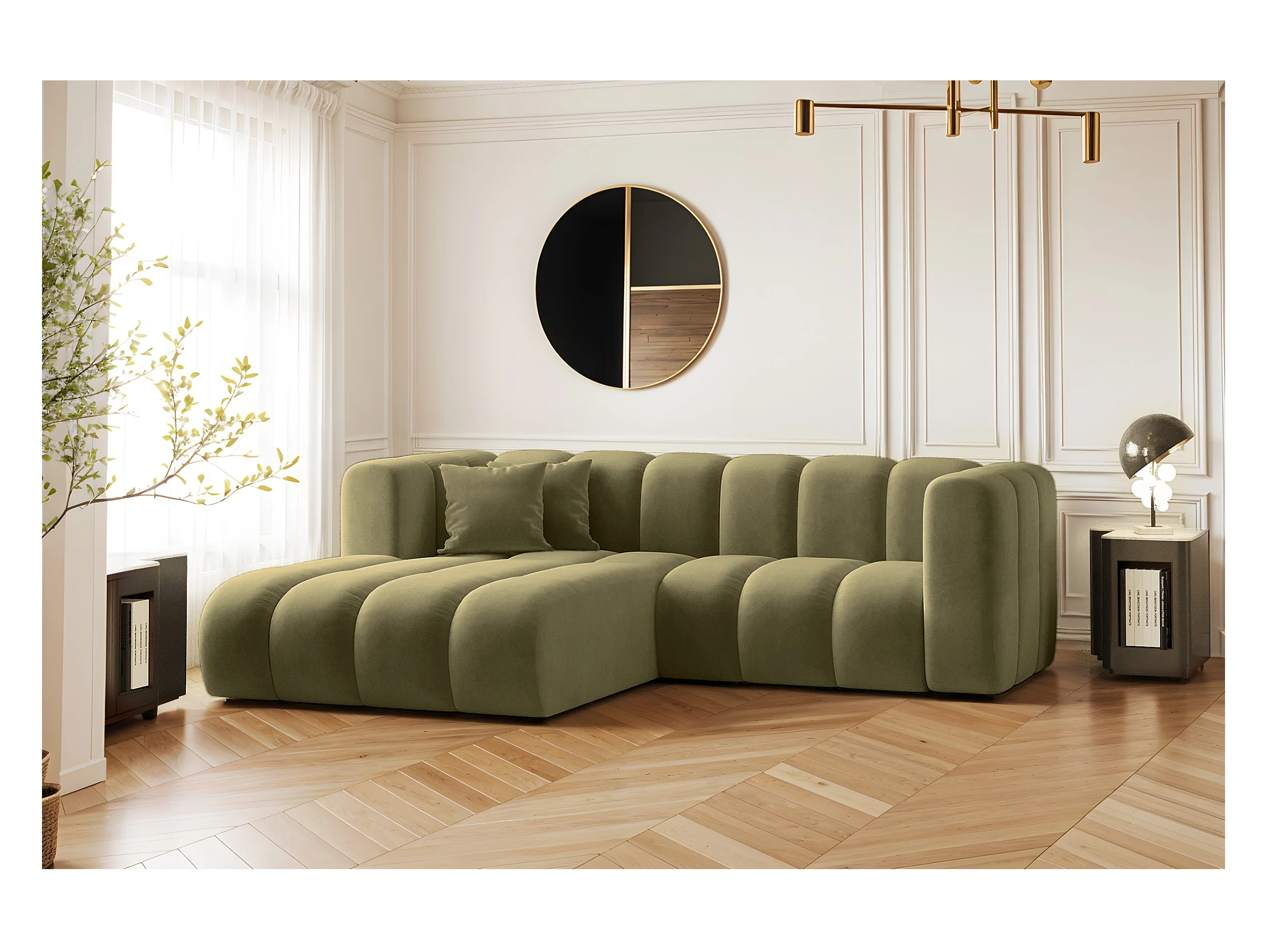 Canapé L-Form Modena, Canapé d'angle Moderne et Confortable Tissu Salvador Gauche Olive