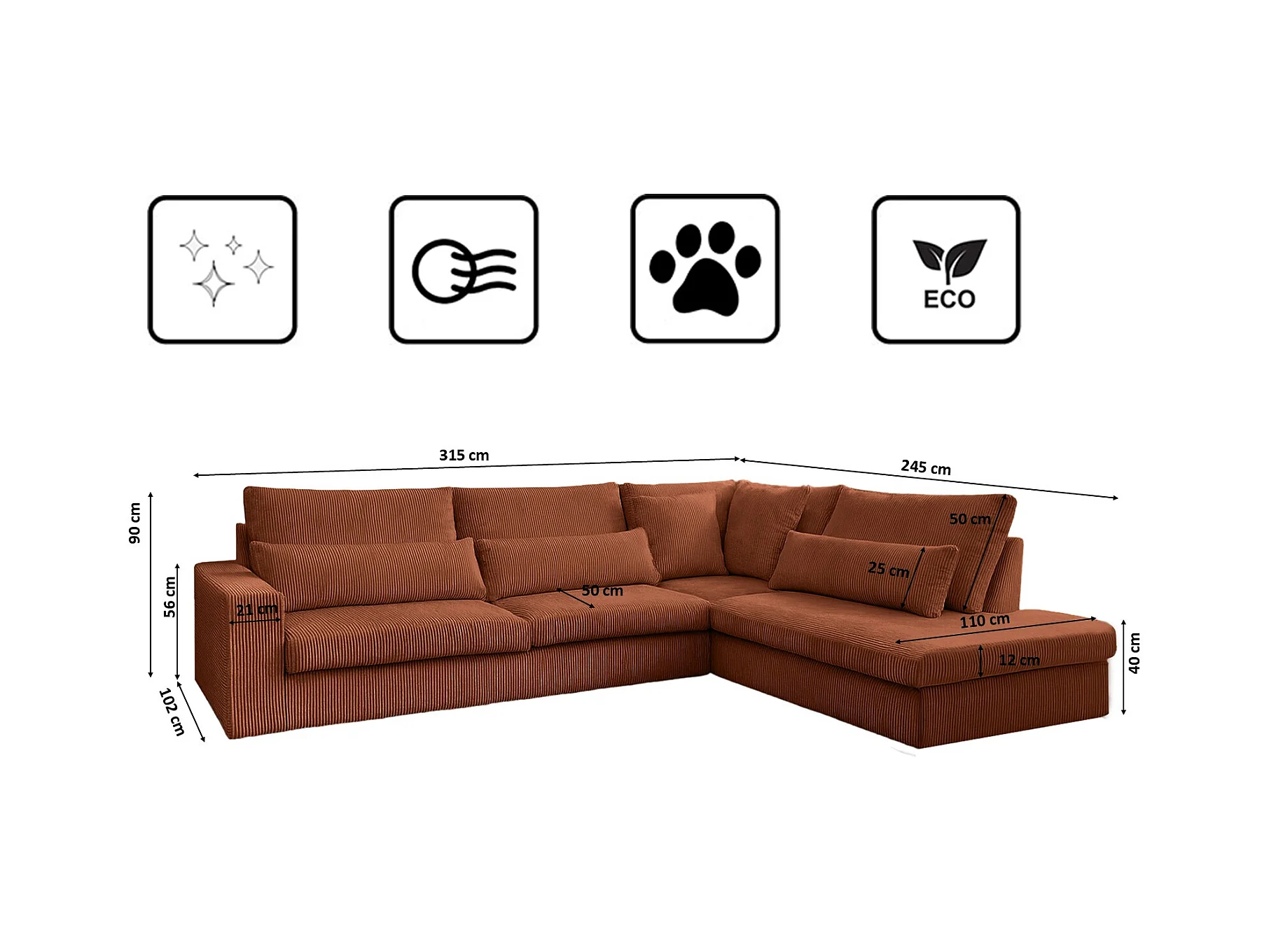 Canapé d'angle en L SVEN tissu Poso cuivre droit
