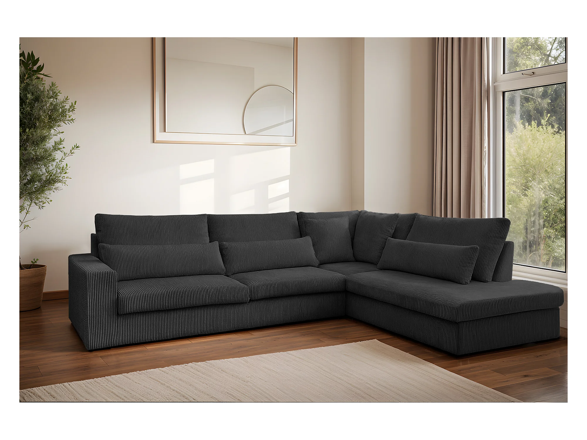 Canapé d'angle en L SVEN tissu Poso Graphite Droite