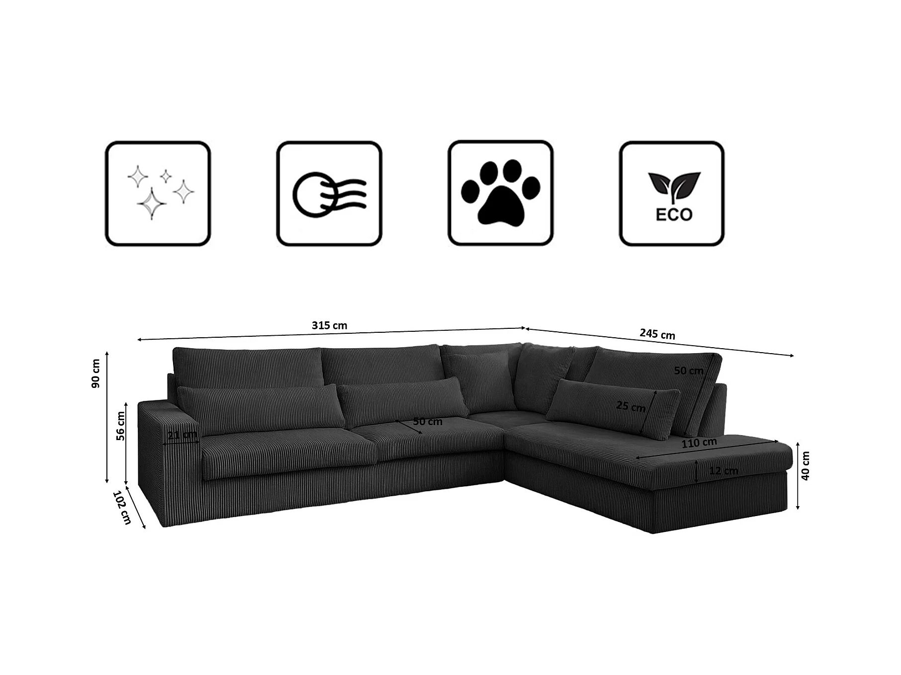 Canapé d'angle PULA, tissu Scala, anthracite
