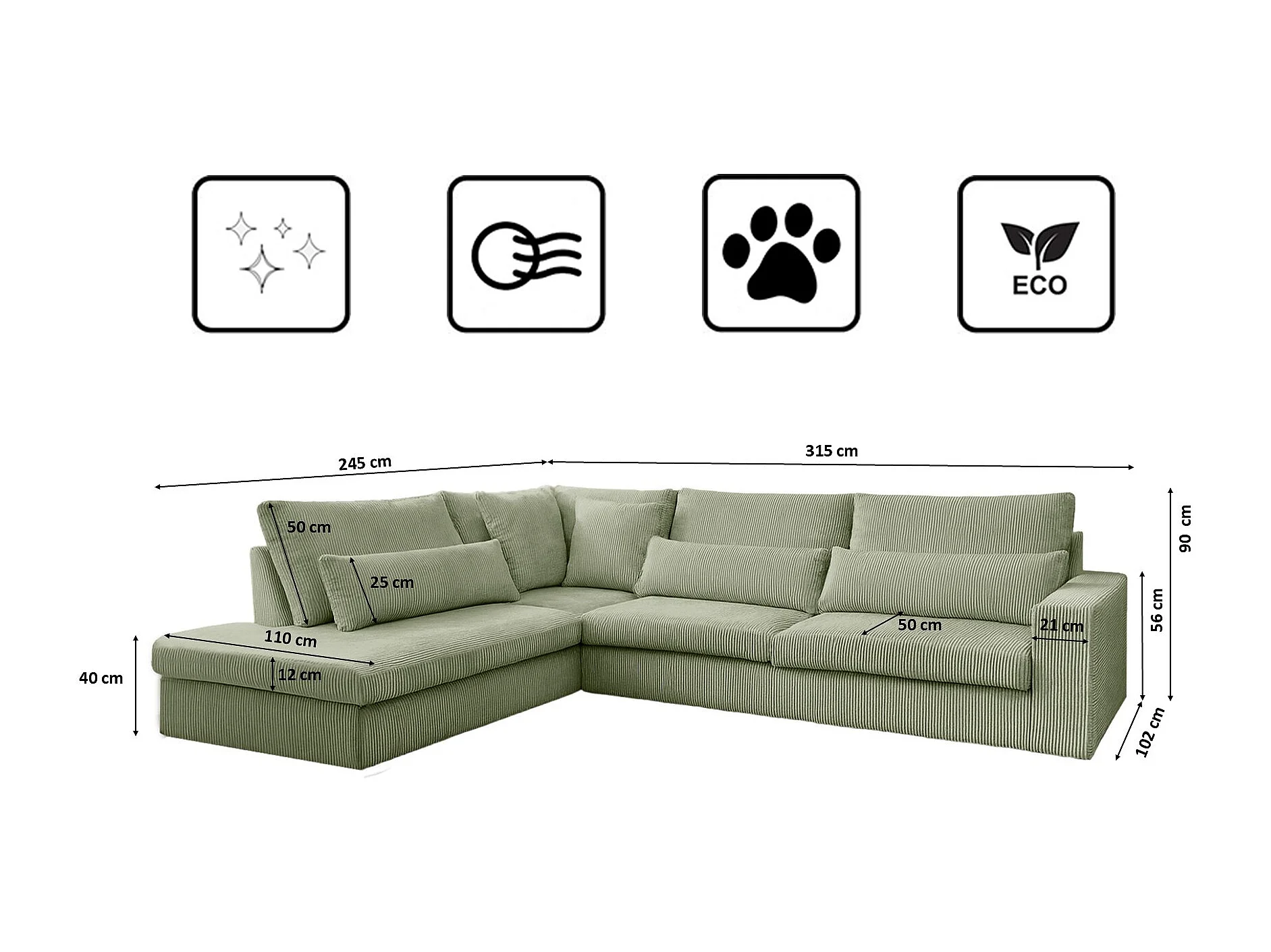 Canapé d'angle PULA, tissu Perfect Harmony, vert
