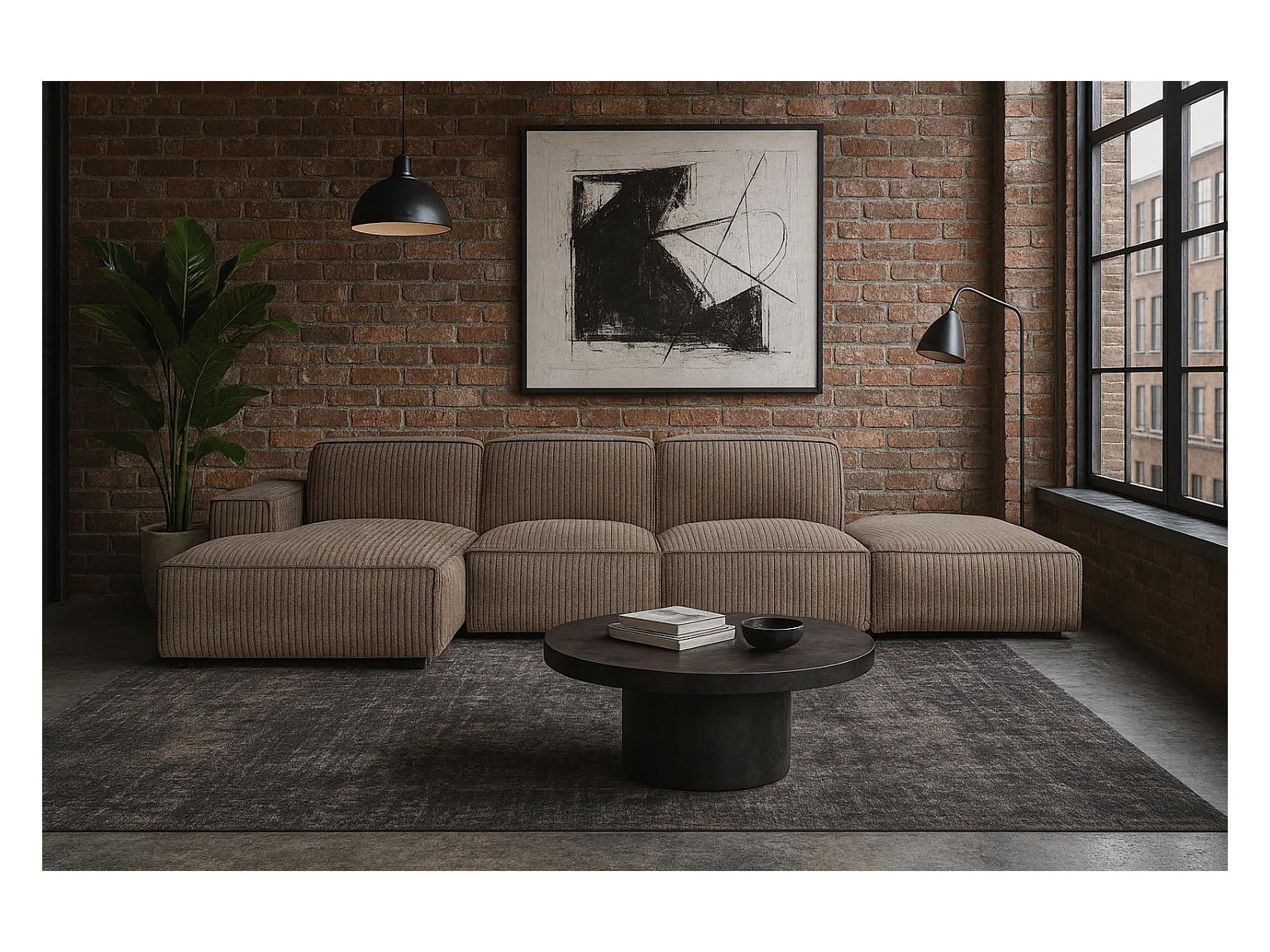 Canapé d'angle en U Cursal, tissu Poso, beige foncé