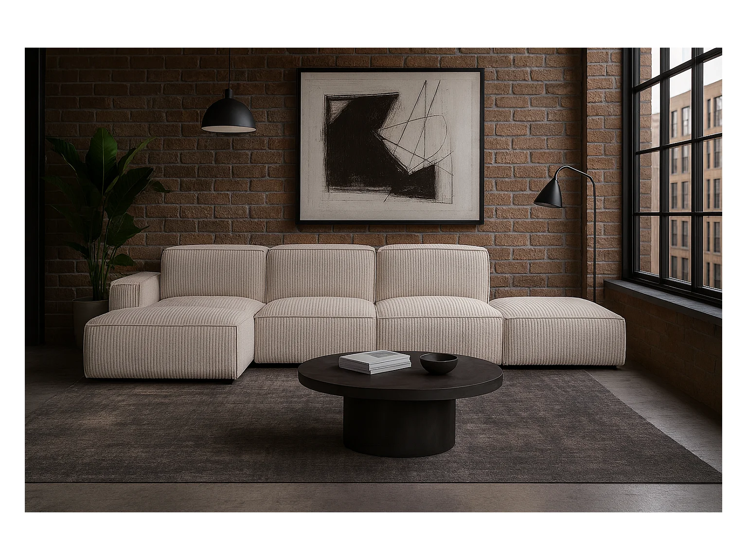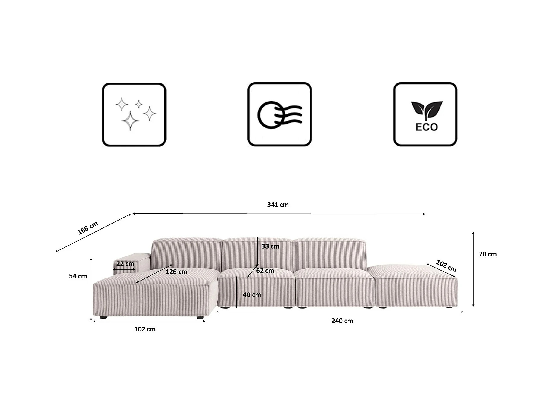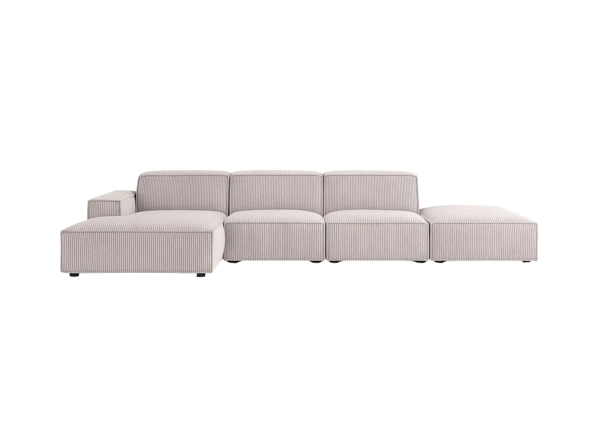 Canapé d'angle en L + tabouret Cursal, tissu Poso, beige, gauche