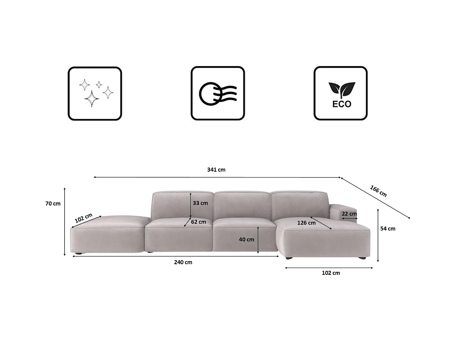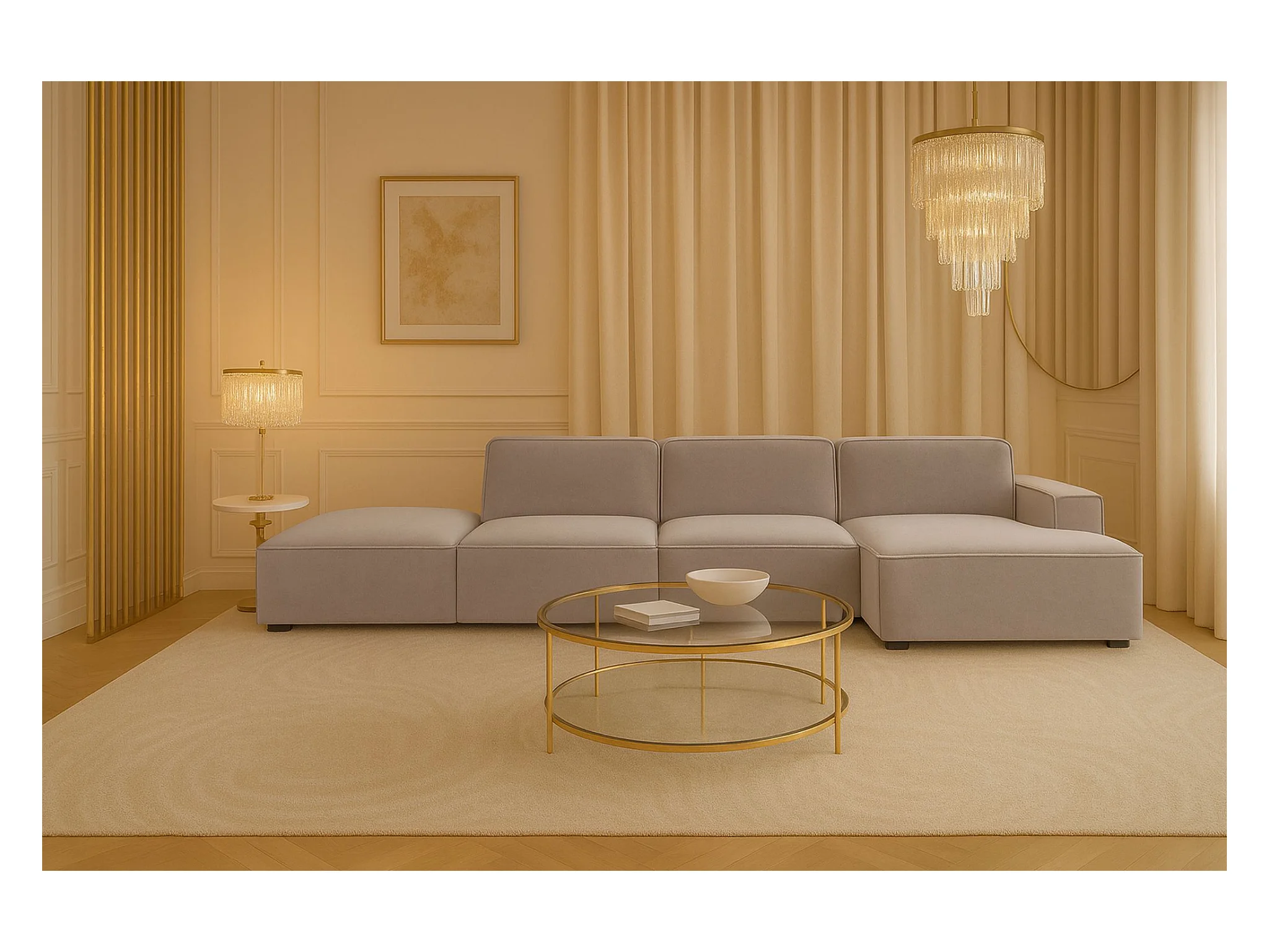 Canapé d'angle en L + tabouret Cursal, tissu Salvador, gris, droit