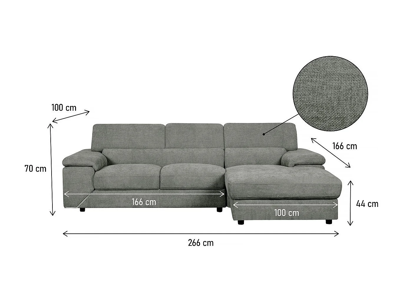 Canapé d'angle en tissu chenille "London" - 4 places - Gris