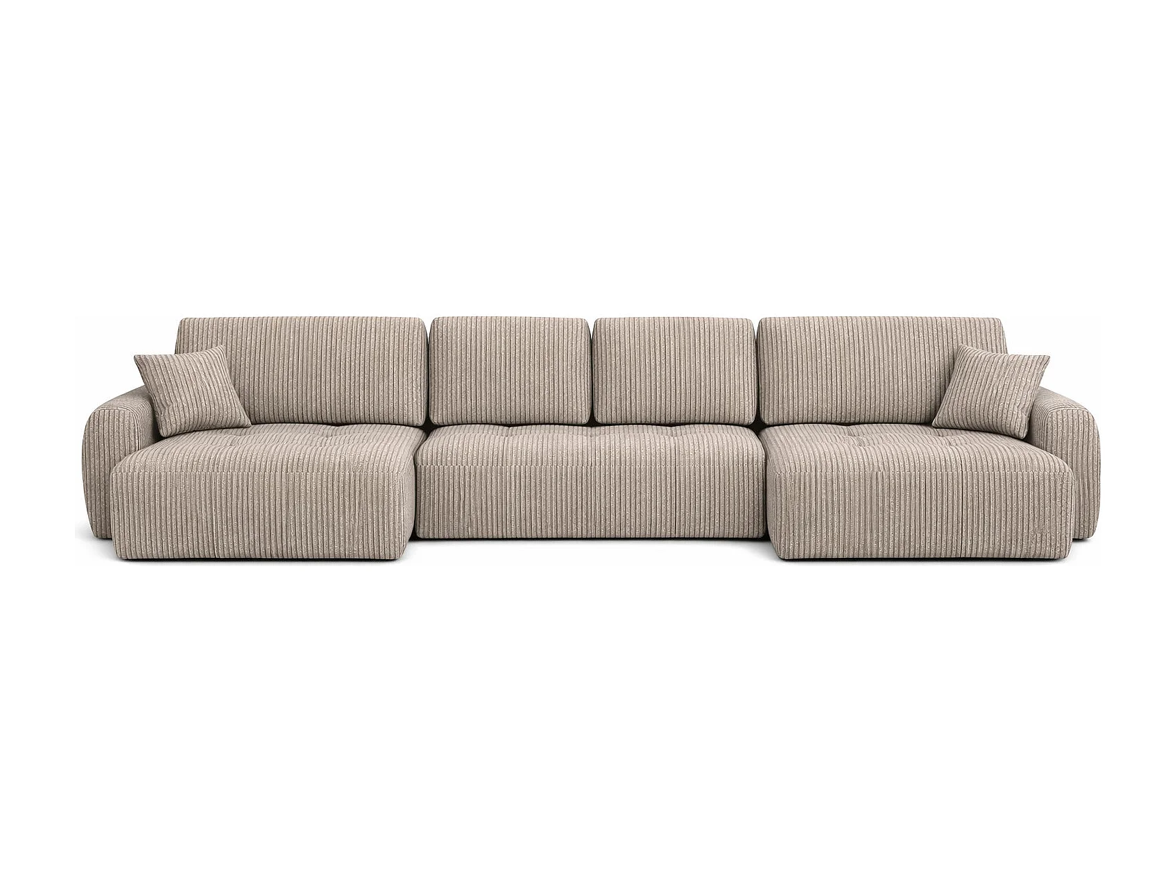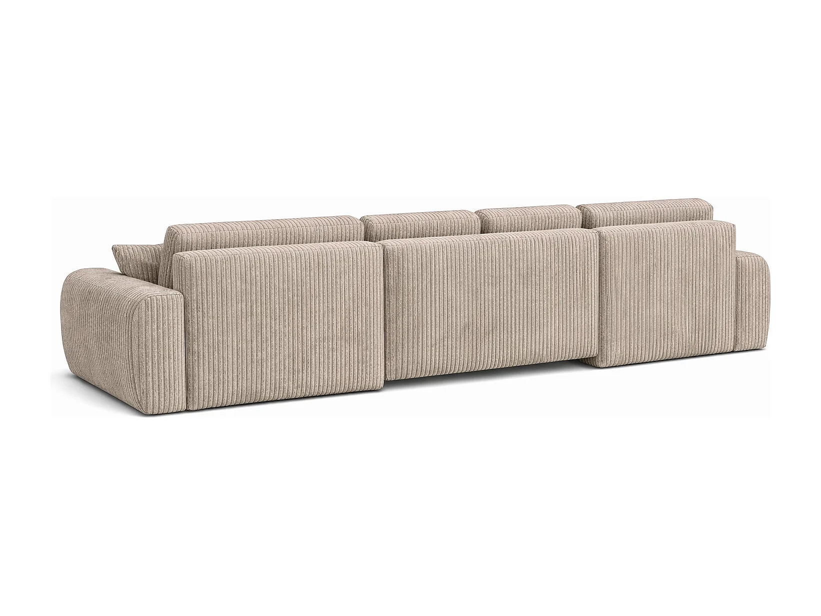 Canapé d’angle en U avec fonction couchage et coffre de rangement Ivo U, velours côtelé Poso, Beige foncé