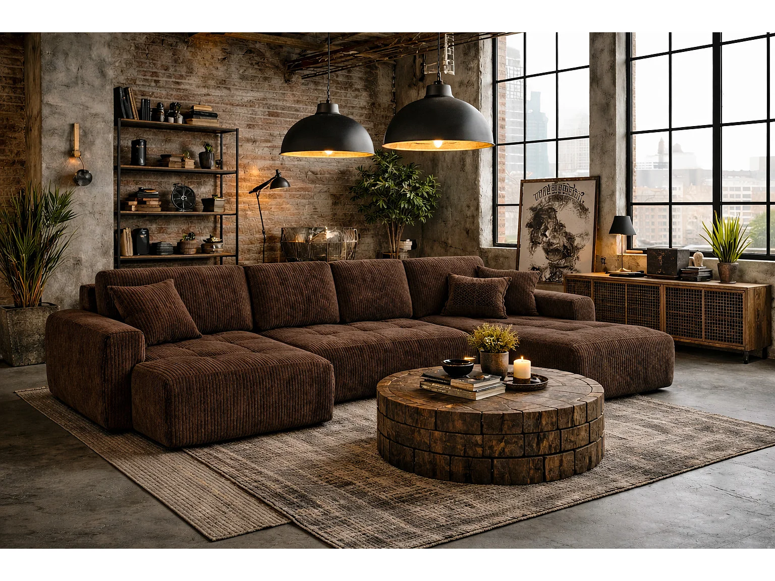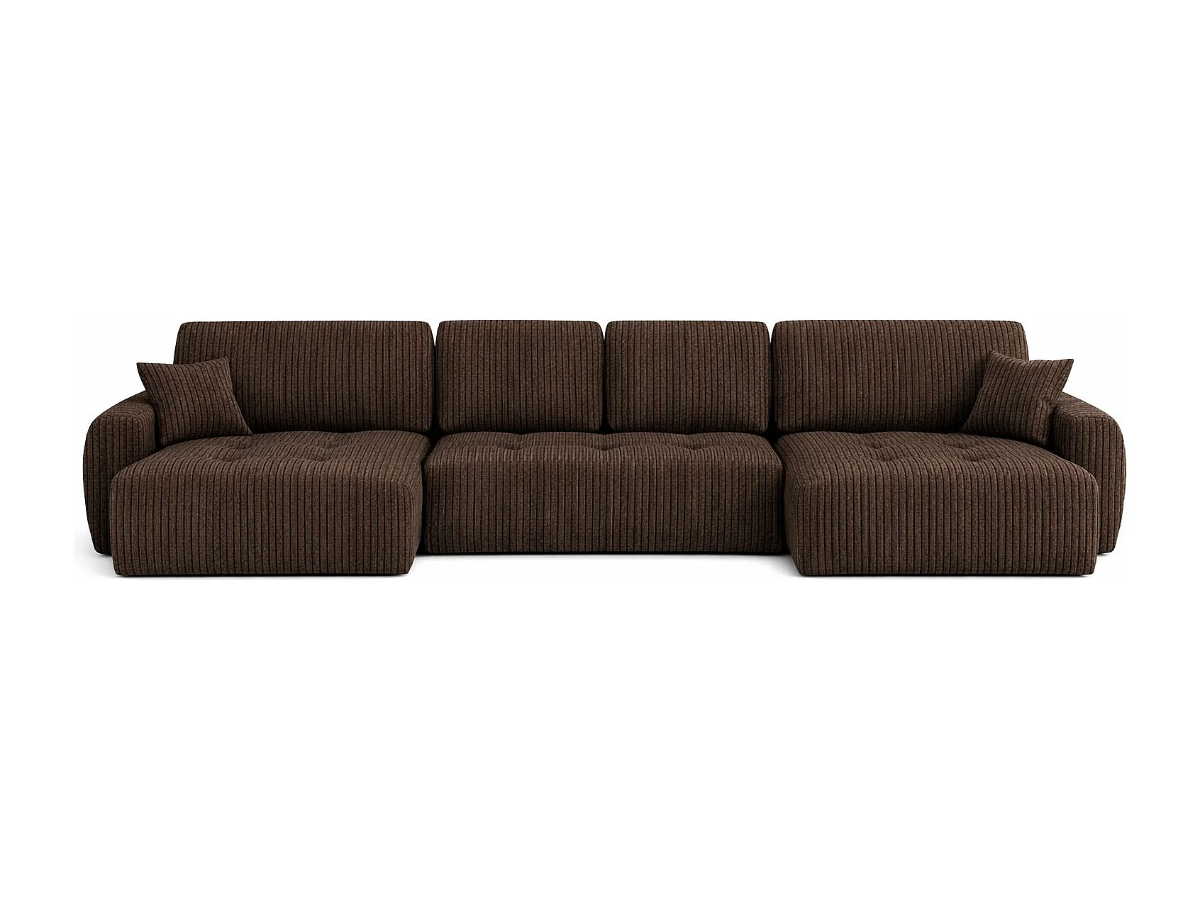 Canapé d’angle en U avec fonction couchage et coffre de rangement Ivo U, velours côtelé Poso, Marron
