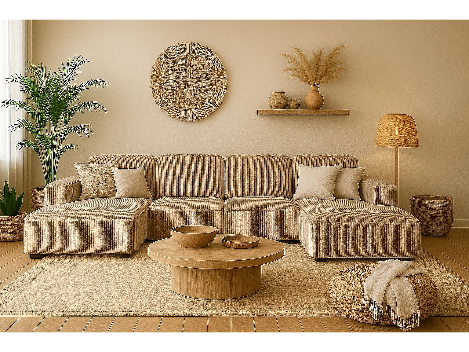 Canapé d'angle en U Cursal, tissu Poso, beige foncé