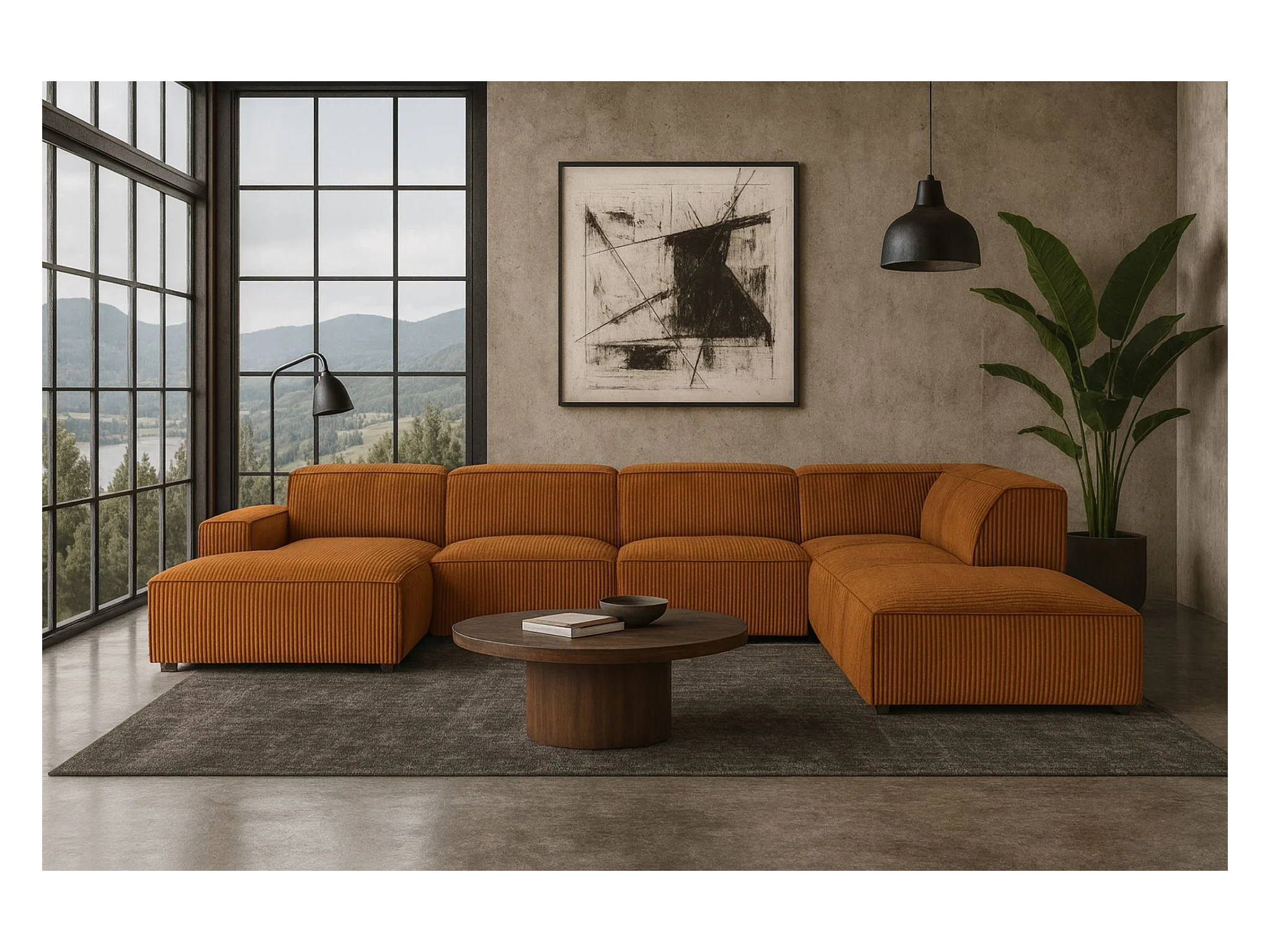 Canapé d'angle Cursal Atelier, tissu Poso, cuivre, droit
