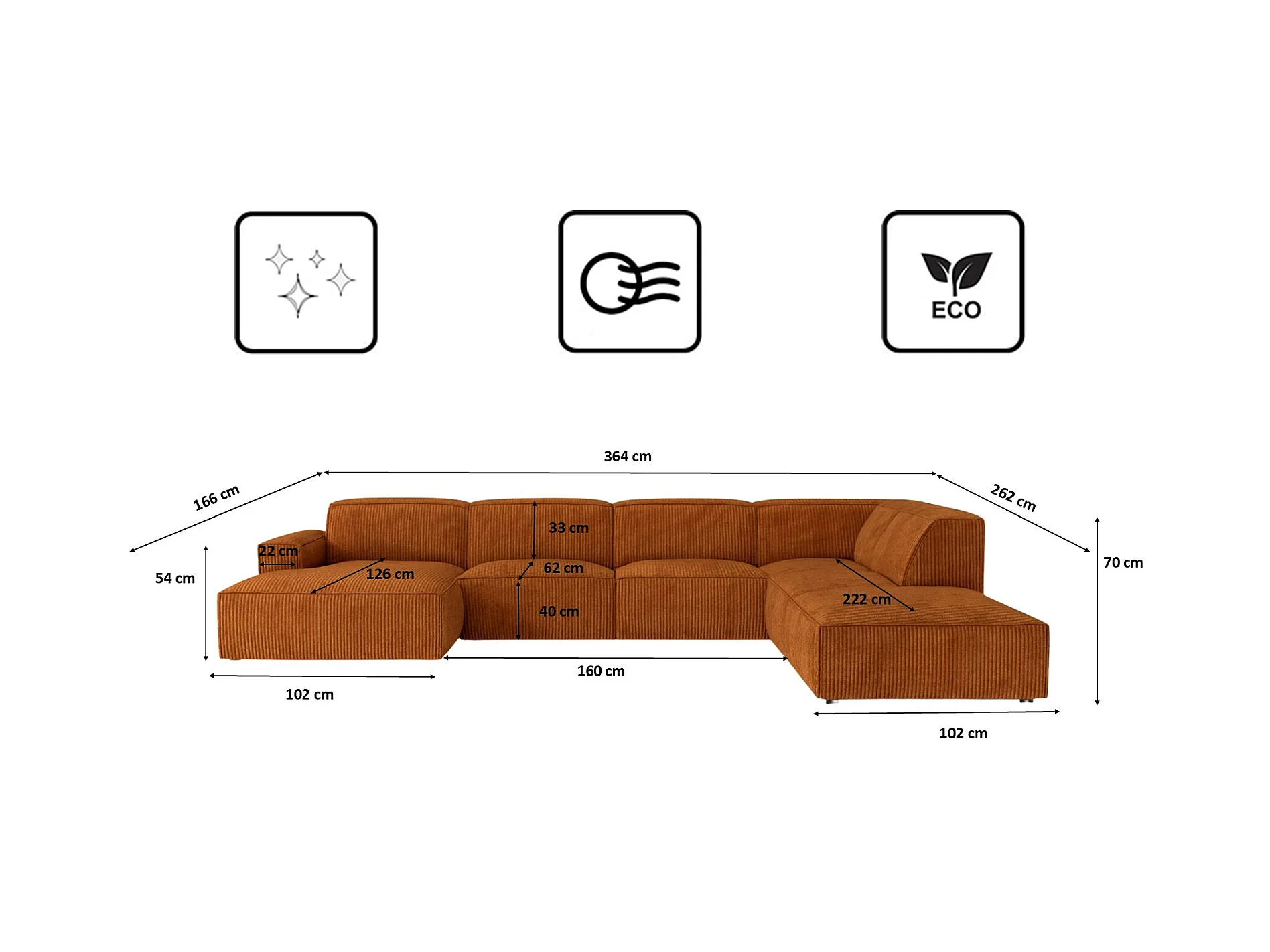 Canapé d'angle en U Cursal V, tissu Poso, cuivre, droit