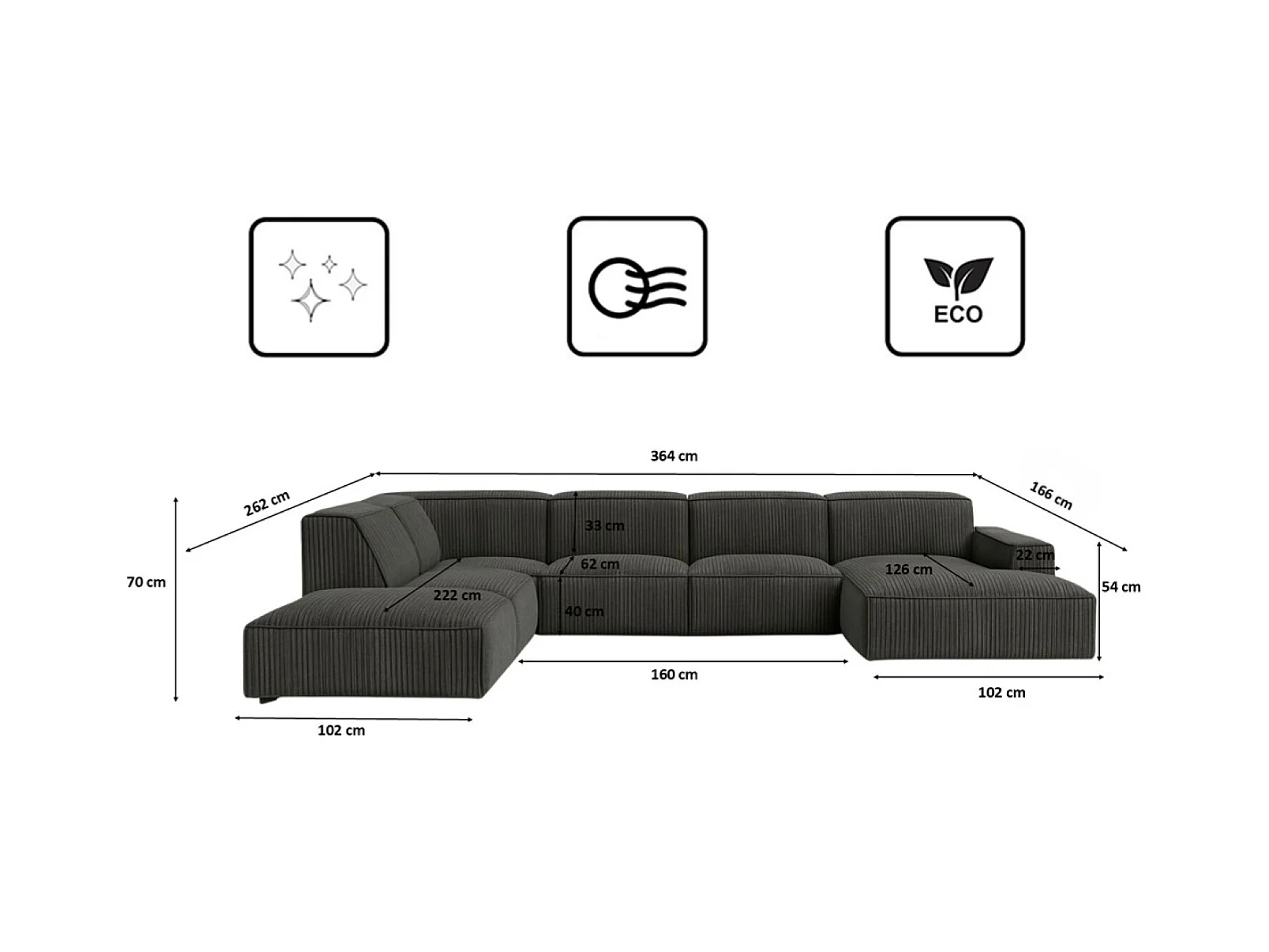 Canapé d'angle en U Siena avec tissu Artico anthracite