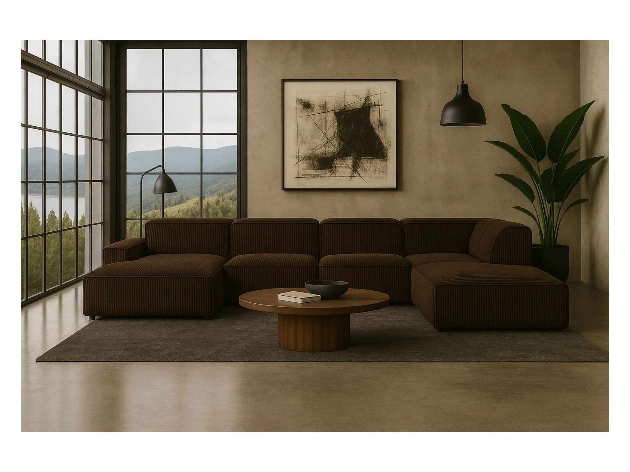 Canapé d'angle panoramique 6 places tissu chocolat Largos 362cm