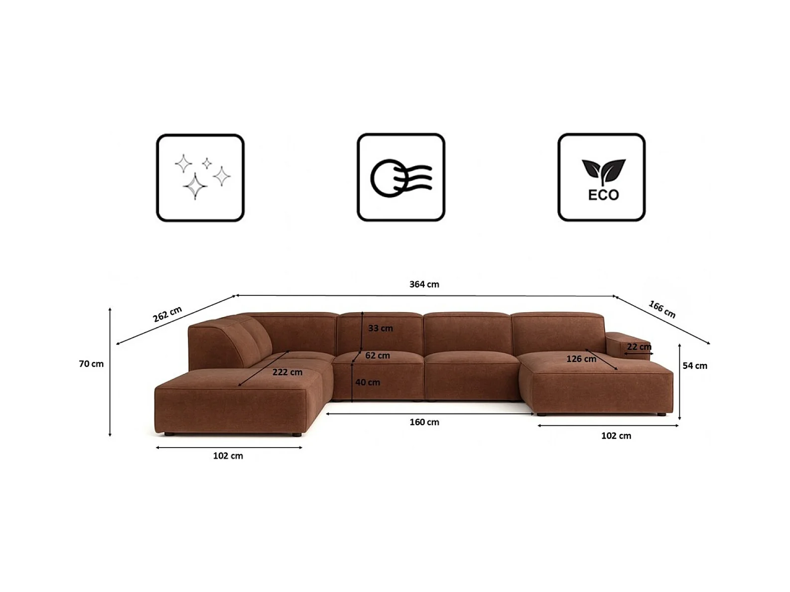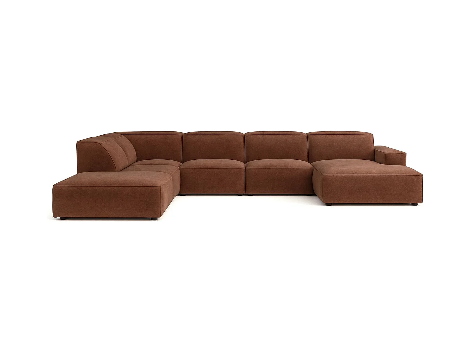 Canapé d'angle en U Cursal V, tissu Poso, marron, droit